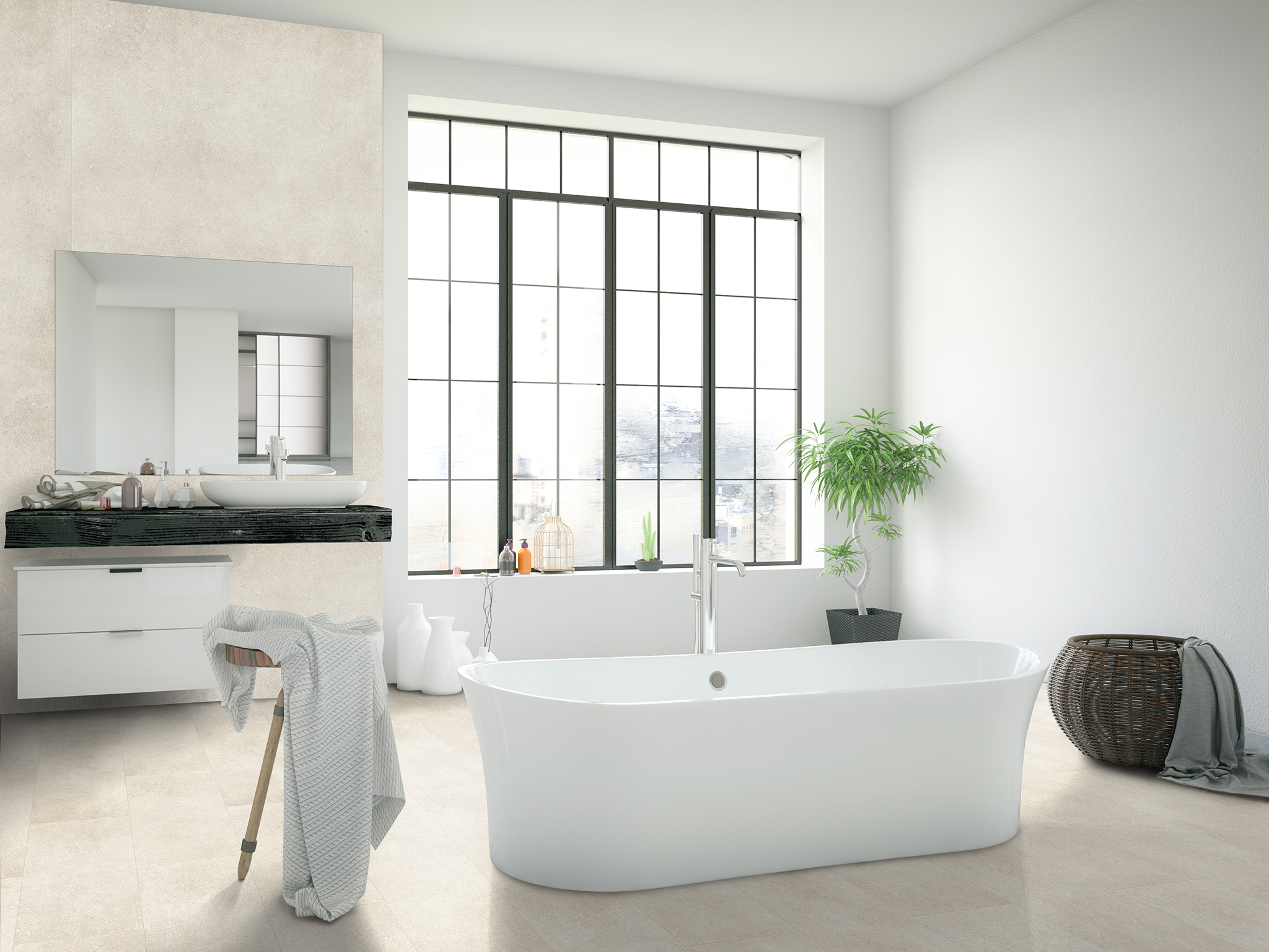 Díky Třída použití 34/AC6 jsou Designové podlahy Ideální pro velmi frekventované obytné a komerční prostory. Tato matná kamenná struktura designových podlah ve formátu dlaždic vytváří moderní vzhled a zajišťuje vysoký komfort chůze.