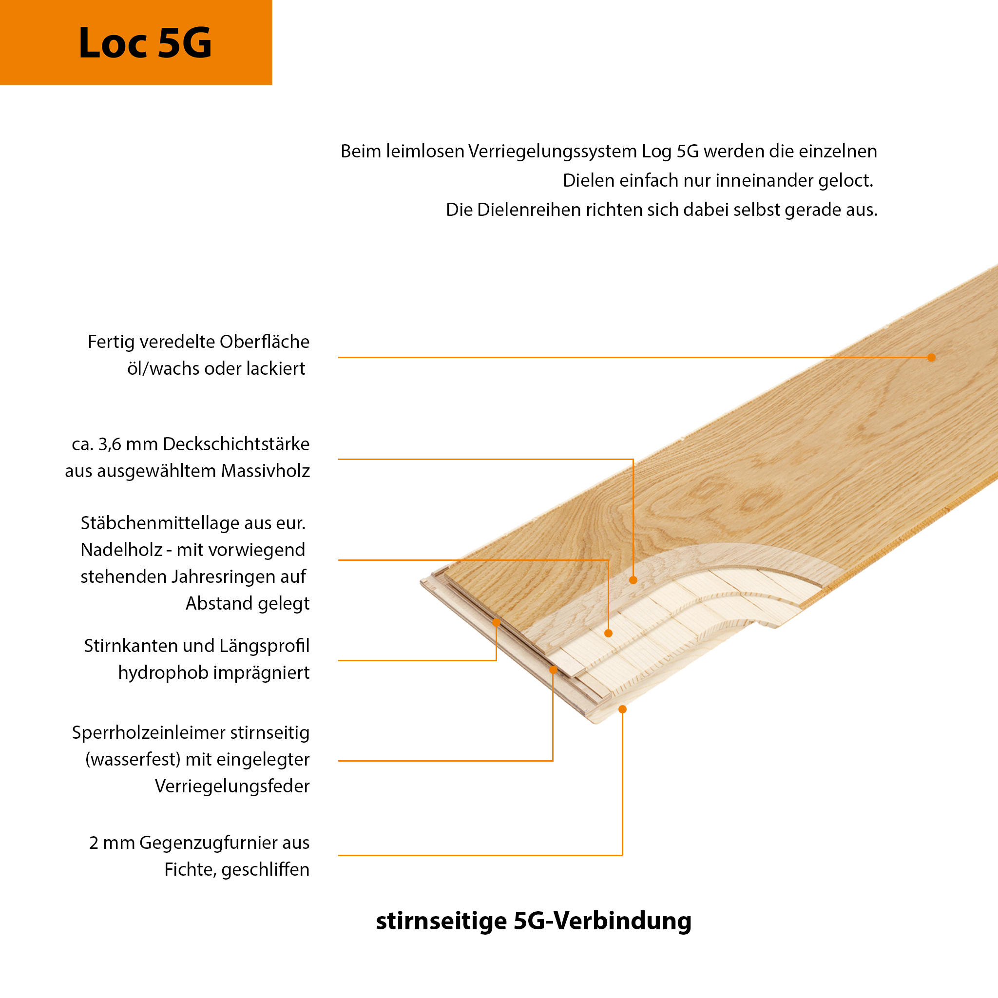 Kreativně navržené a pečlivě upravené dubové podlahy od Floor-Art® zajistí nesrovnatelně jedinečné prostředí. Propracované povrchové úpravy dodávají Selským prknům mimořádný vzhled a udělají každou podlahu jedinečnou. S bez lepidla uzamykacím systémem Loc5G se jednotlivé desky jednoduše zafixují do sebe. Prkna do sebe zapadnou sami. Počítejte prosím s delšími dodacími lhůtami - přibližně 2–4 týdny.| Délka v mm: | 2200 |