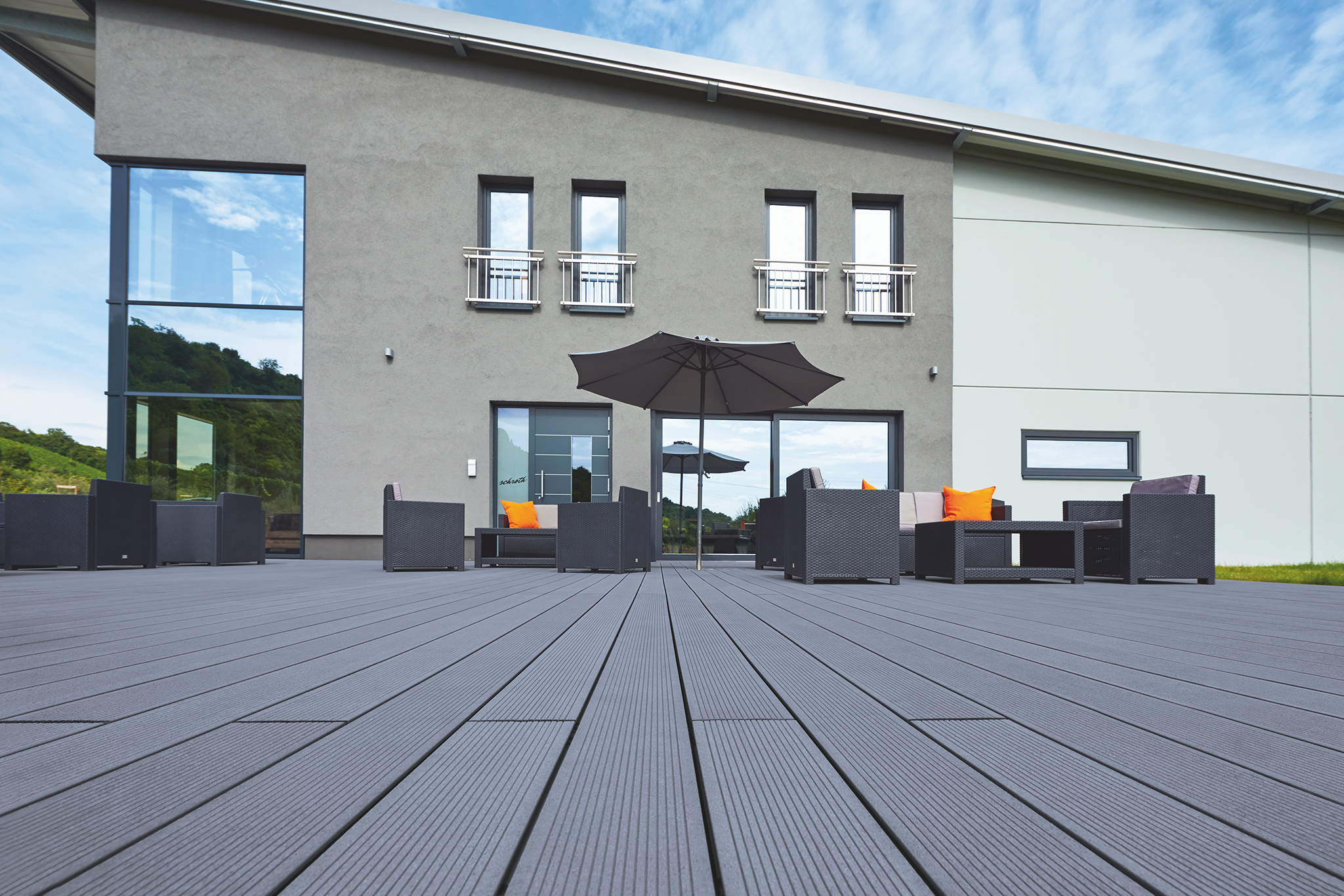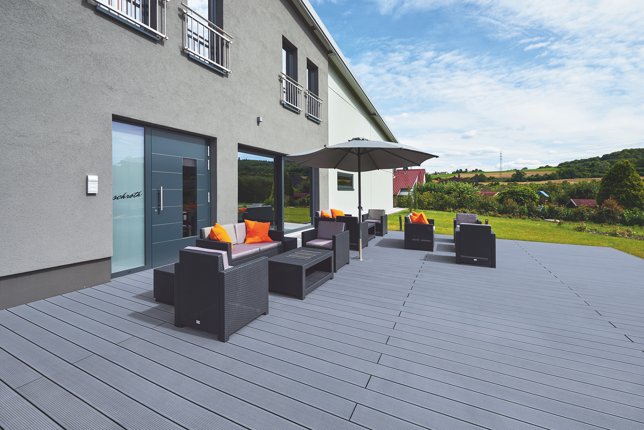 Užijte si hodiny slunečního svitu na příjemné terase se stylovým vzhledem dřevěné podlahy. KOMPATKT jako masivní nebo voštinová profilová deska kombinuje funkčnost se stylovým vzhledem dřevěné desky s dobrým poměrem ceny a kvality. Na jedné straně jemně žebrované - na druhé jsou hrubé blokové pruhy. Obě strany jsou kartáčované pro dosažení přirozeného vzhledu dřevěných prken. Terasy KOMPAKT vás díky své povrchové struktuře a třem atraktivním barvám hnědé, šedé a antracitové zve k relaxaci a lenošení. Díky svému pevnému a lehkému designu voštinových prken v různých barvách nabízí terasové prkno velký výběr designu.
