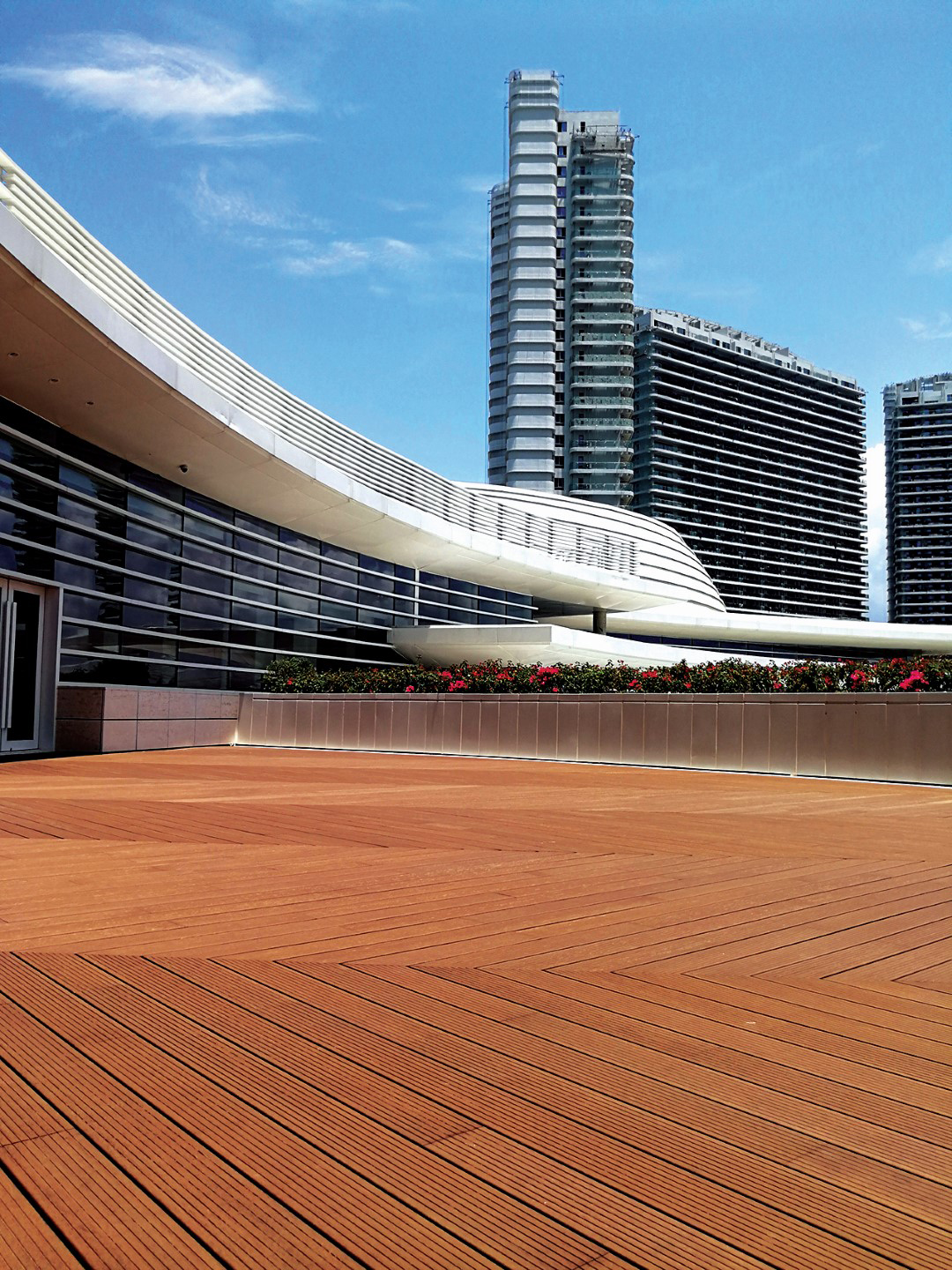 Dasso Terrassendielen aus Bambus sind extrem dauerhaft und dimensionsstabil. Seine Hauptbestandteile sind Bambusfasern und Phenolharze.