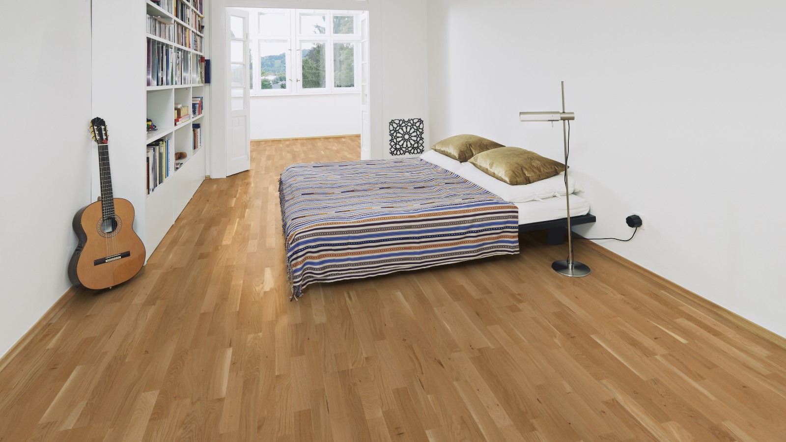 Kromě vysoce kvalitního a snadno udržovatelného UV těsnění si můžete vybrat naolejované / voskované / kartáčované, zkosené a barevné povrchy. Vrstva ze vzácného dřeva šetří zdroje a třívrstvé lepení zajišťuje stabilitu.