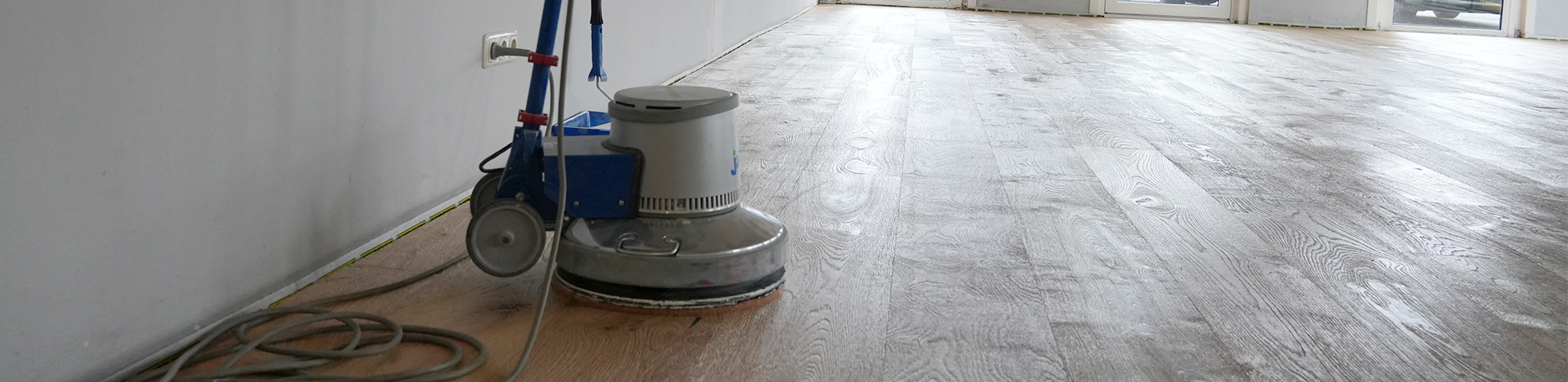 Die Lackschicht sollte vorher über Nacht trocknen. Mit einer Exzenter-Schleifmaschine und einem Schleifmittel der Körnung 120 bis 150 schleifen Sie die Grundierung leicht an. Wir empfehlen bei dieser Arbeit eine Schutzbrille. Die Maschine muss stets in Bewegung sein! Je nach Schleifmaschine müssen Sie die Ränder des Bodens möglicherweise per Hand mit etwas Schleifpapier behandeln. Säubern Sie erneut den Boden mit einem Besen oder Staubsauger. Nach der letzten Lackschicht können Sie das Zimmer nach rund 12 Stunden wieder betreten.