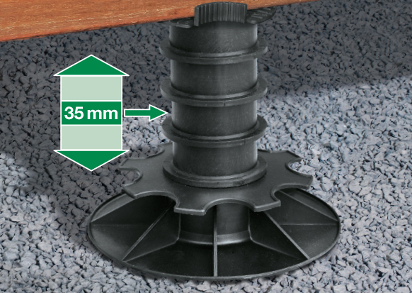 Das SPAX Lift System hebt die Unterkonstruktion vom Boden und verhindert so aufsteigende Feuchtigkeit.