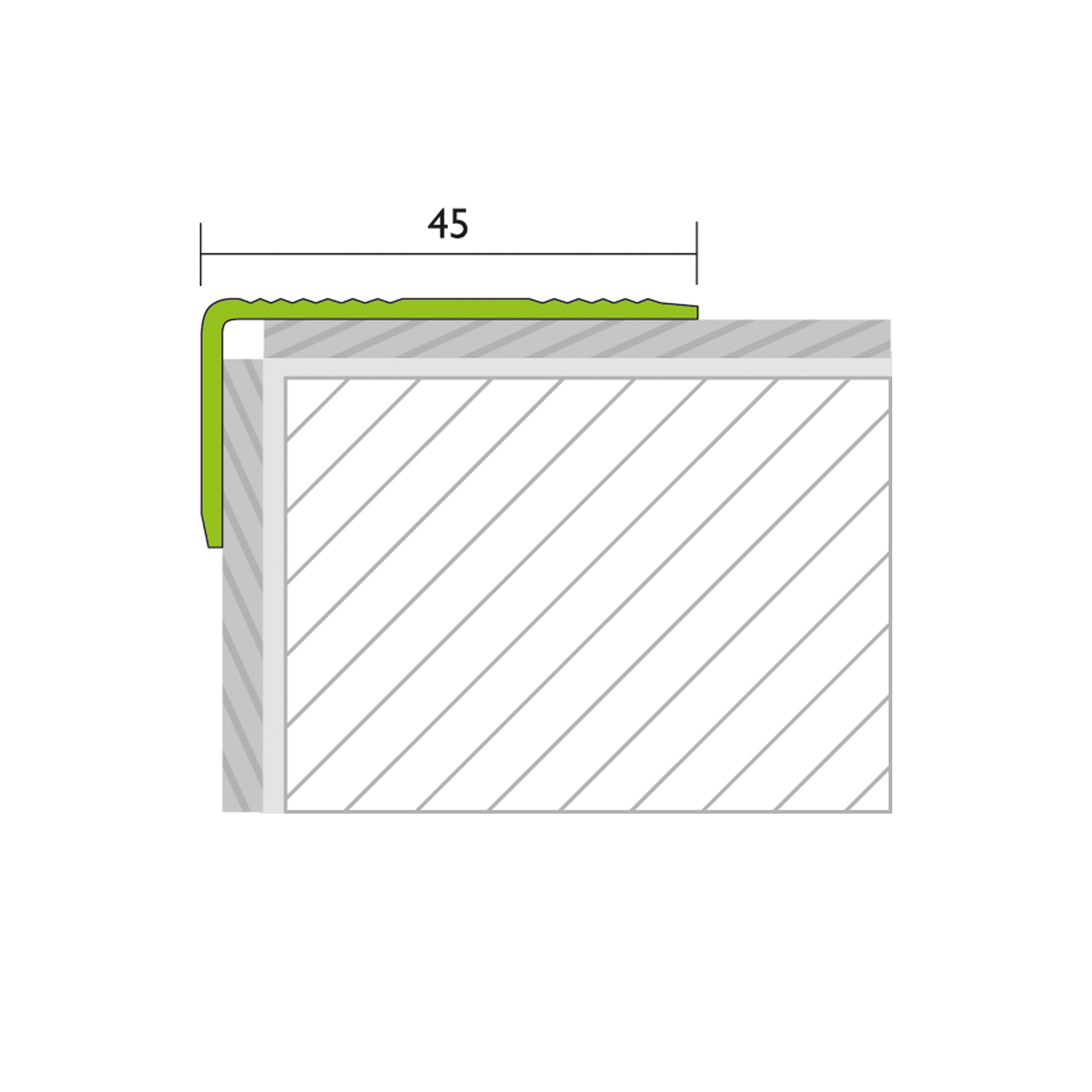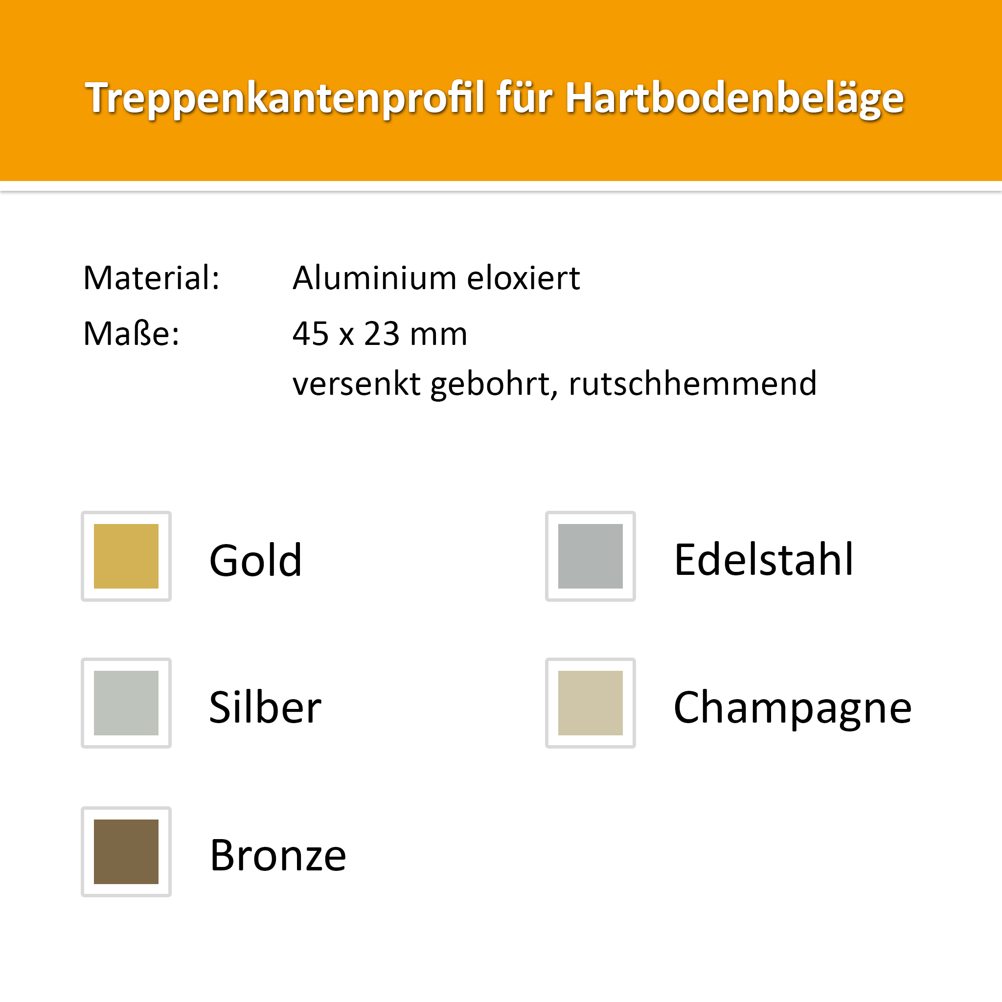Profil schodiště s protiskluzovým povrchem poskytuje vynikající oporu. Je vyroben z lehkého a odolného hliníku a je k dispozici v různých atraktivních eloxovaných barvách, které odpovídají stylu podlahy a vybavení.