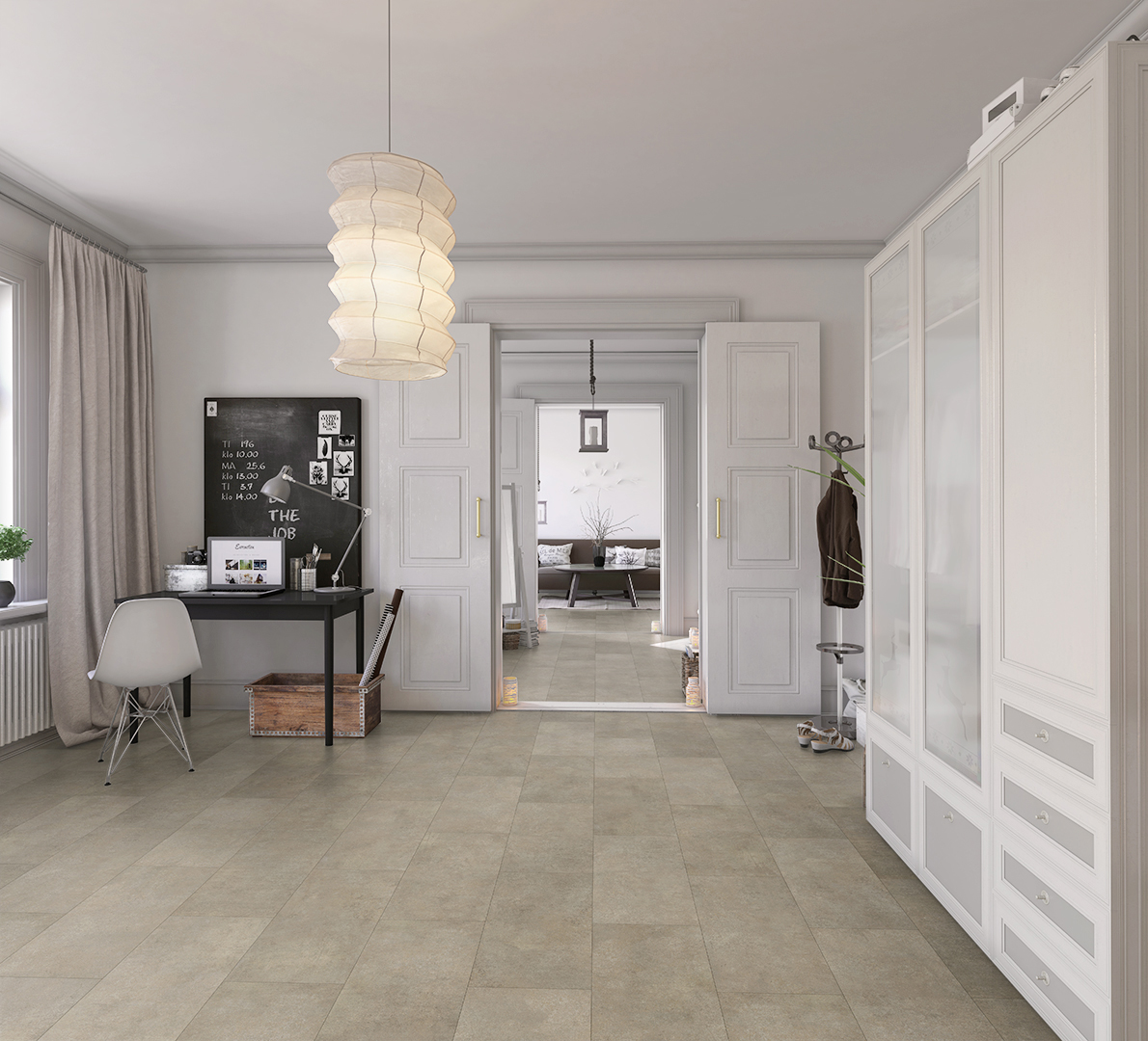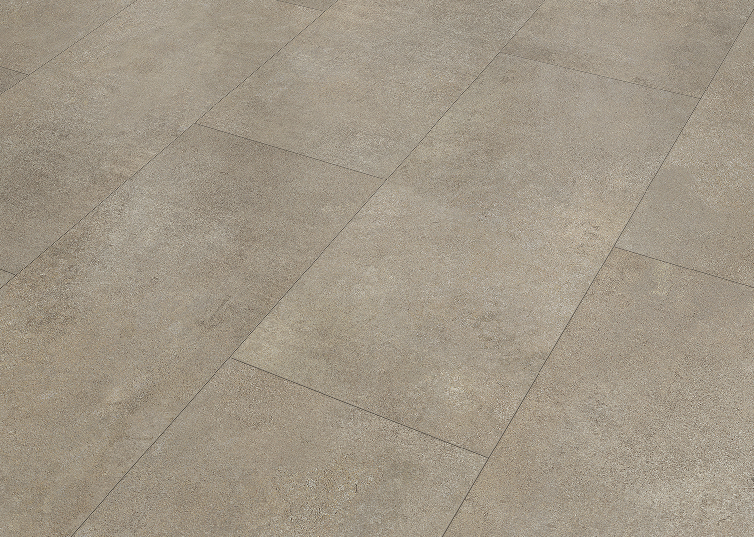 Dank Nutzungsklasse 34/AC6 sind die Designböden für sehr stark frequentierte Wohn- und Gewerberäume bestens geeignet. Die matte Steinstruktur der Designböden im Fliesenformat erzeugt eine moderne Optik und gewährleistet einen hohen Gehkomfort.