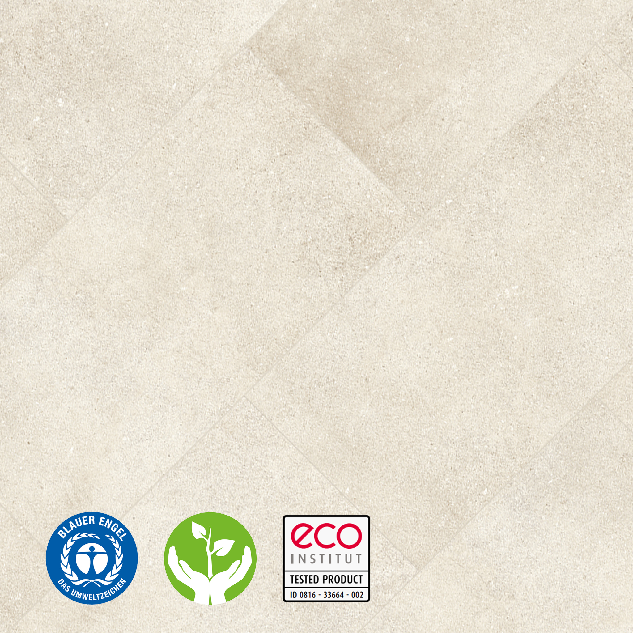 Dank Nutzungsklasse 34/AC6 sind die Designböden für sehr stark frequentierte Wohn- und Gewerberäume bestens geeignet. Die matte Steinstruktur der Designböden im Fliesenformat erzeugt eine moderne Optik und gewährleistet einen hohen Gehkomfort.