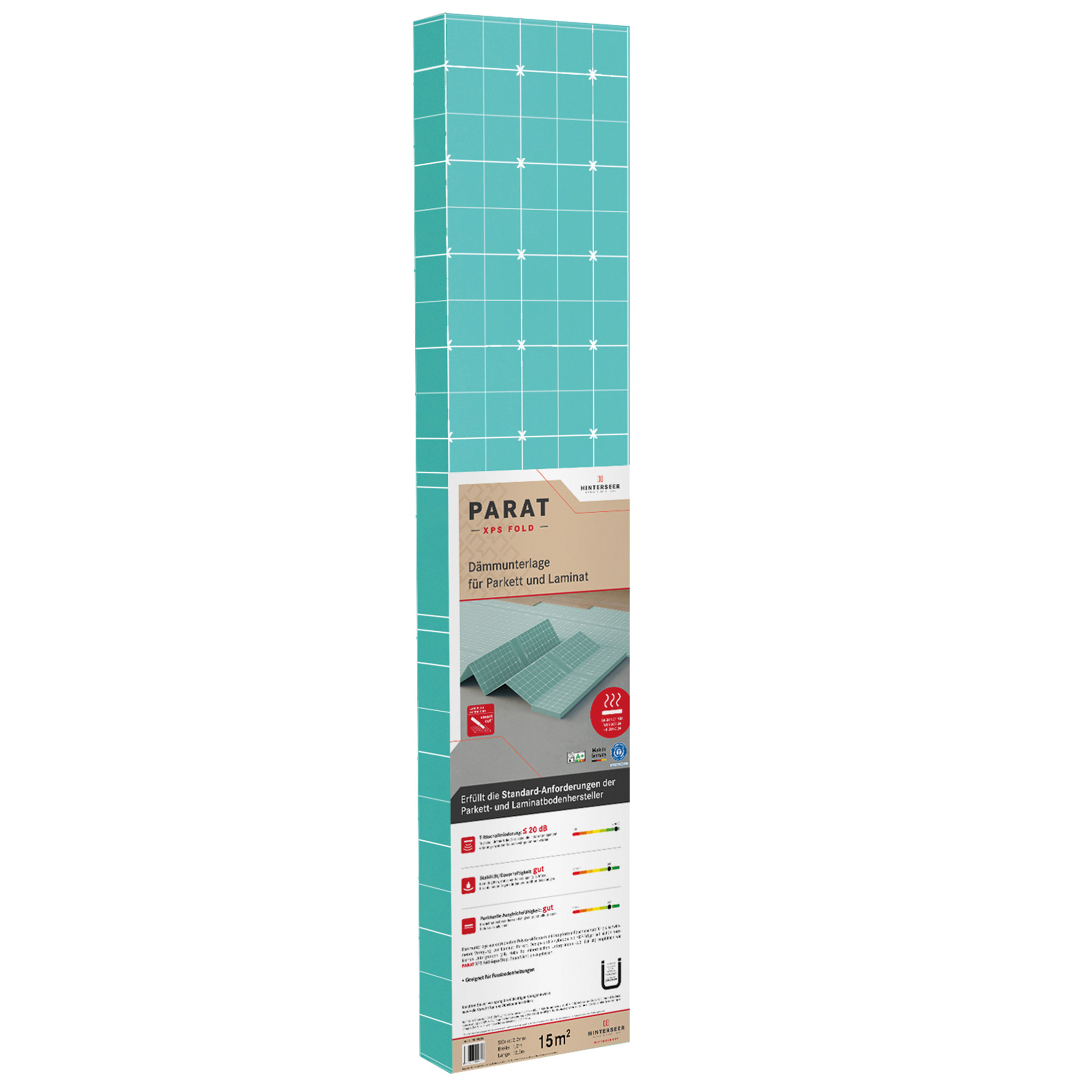 Dämmunterlage aus extrudiertem Polystyrol-Schaum für die schwimmende Verlegung von Laminat, Parkett, Design- und Vinylböden mit HDF-Träger und bietet eine gute Trittschallminderung. Bauaufsichtlich zugelassen.