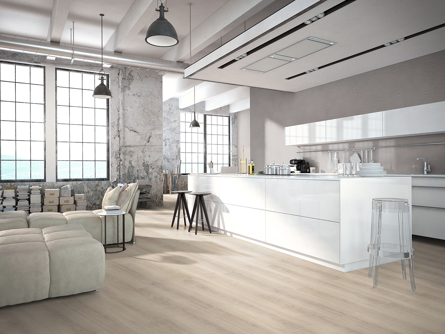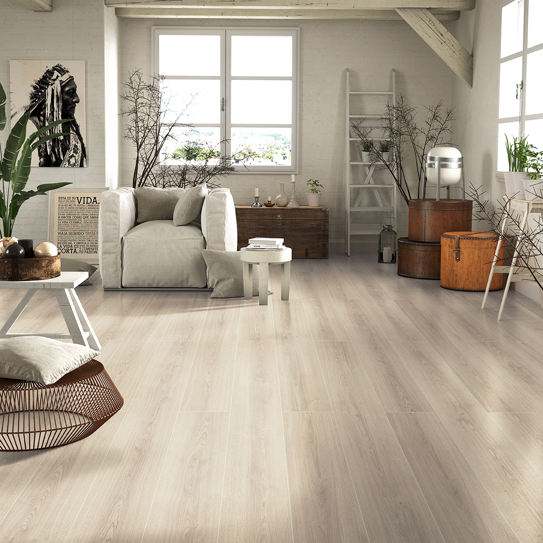 Dank den edlen und dezent strukturierten Oberflächen in sehr naturgetreuer Applikation schafft das Laminat ein modernes Wohnambiente für jeden Geschmack. Die Dekore im beliebten Design einer Landhausdiele wirken mit der betonten V-Fuge besonders hochwertig und stilvoll.