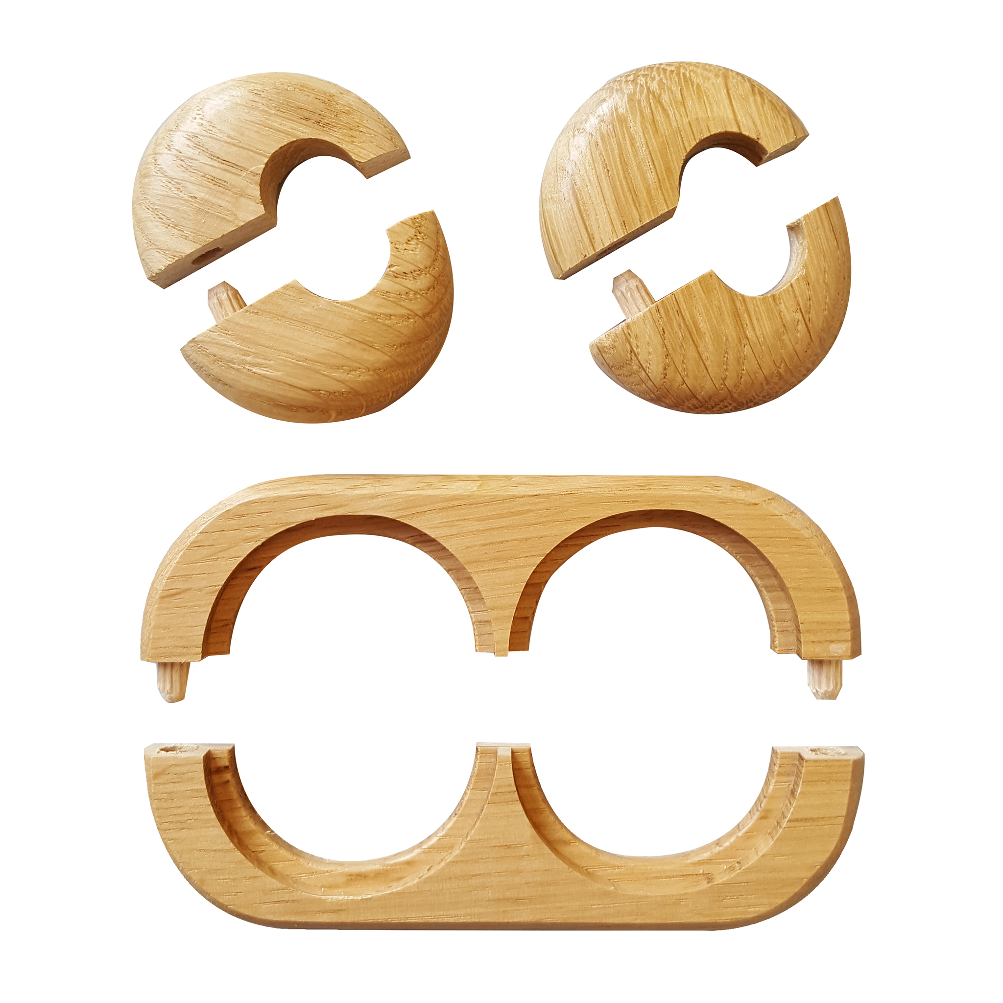 Die lackierte Heizkörperrosette aus Eiche hat einen Innendurchmesser von 16 mm. Sie besteht aus sechs Teilen, passend für 2 Heizrohre und wird mittels Steckverbindung um das Rohr herum montiert.