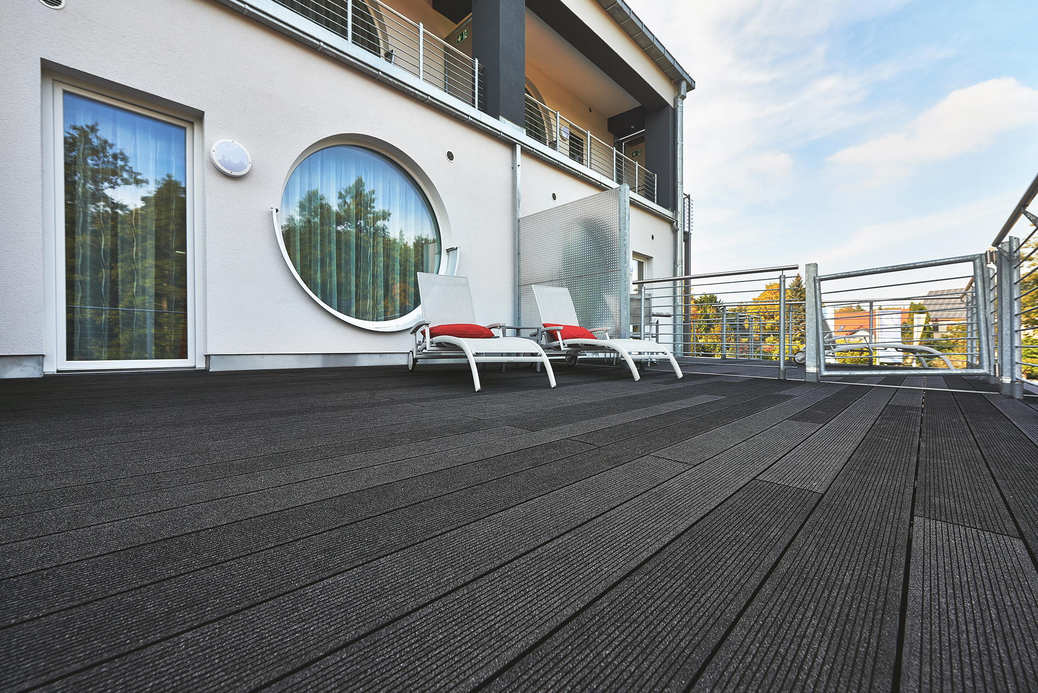 Genießen Sie die Sonnenstunden auf einer einladenden Terrasse mit stilvoller Holzdielenoptik. DIE KOMPAKTE als Massiv- oder Wabenprofildiele verbindet Funktionalität mit einer stilvollen Holzdielenoptik in einem guten Preis-Leistungs-Verhältnis. Fein geriffelt auf der einen Seite - grobe Blockstreifen auf der anderen. Um die natürliche Holzdielenoptik zu erreichen sind beide Seiten gebürstet. Mit ihrer Oberflächenstruktur und den drei ansprechenden Farben Braun, Grau und Anthrazit lädt DIE KOMPAKTE Terrassendiele zum Entspannen und Verweilen ein. Dank ihrer Ausführung als Massiv- und leichte Wabendiele in verschieden Farben bietet die Terrassendiele große Gestaltungsfreiheit.