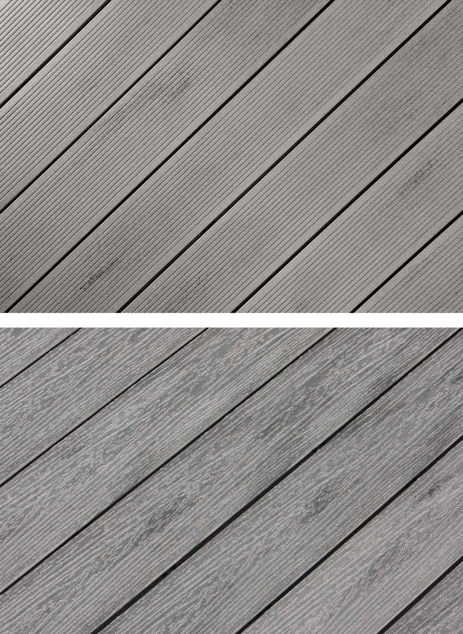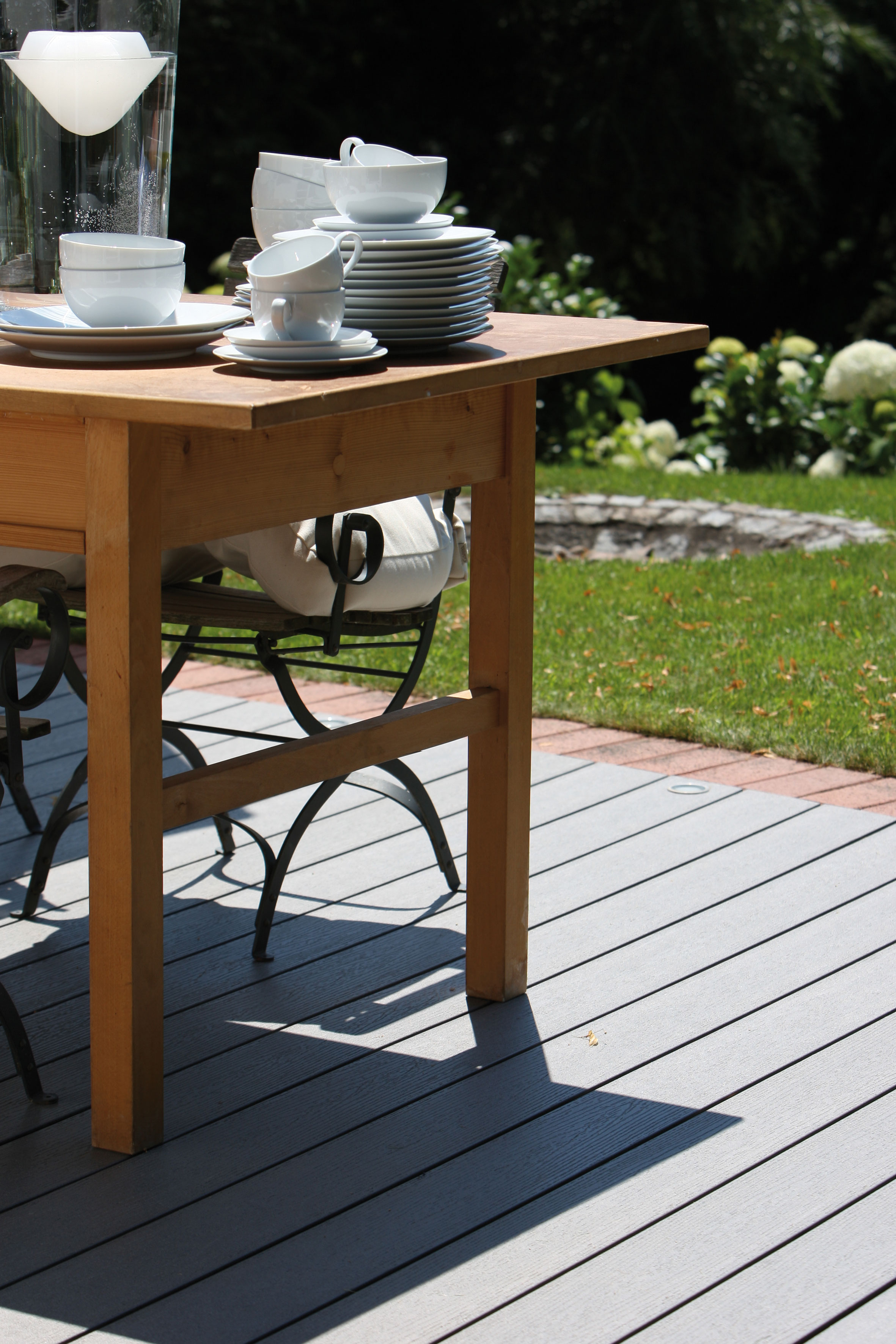 - WPC-Terrassendiele mit natürlich anmutendem Farbverlauf und individueller Maserung/Oberflächenstruktur
