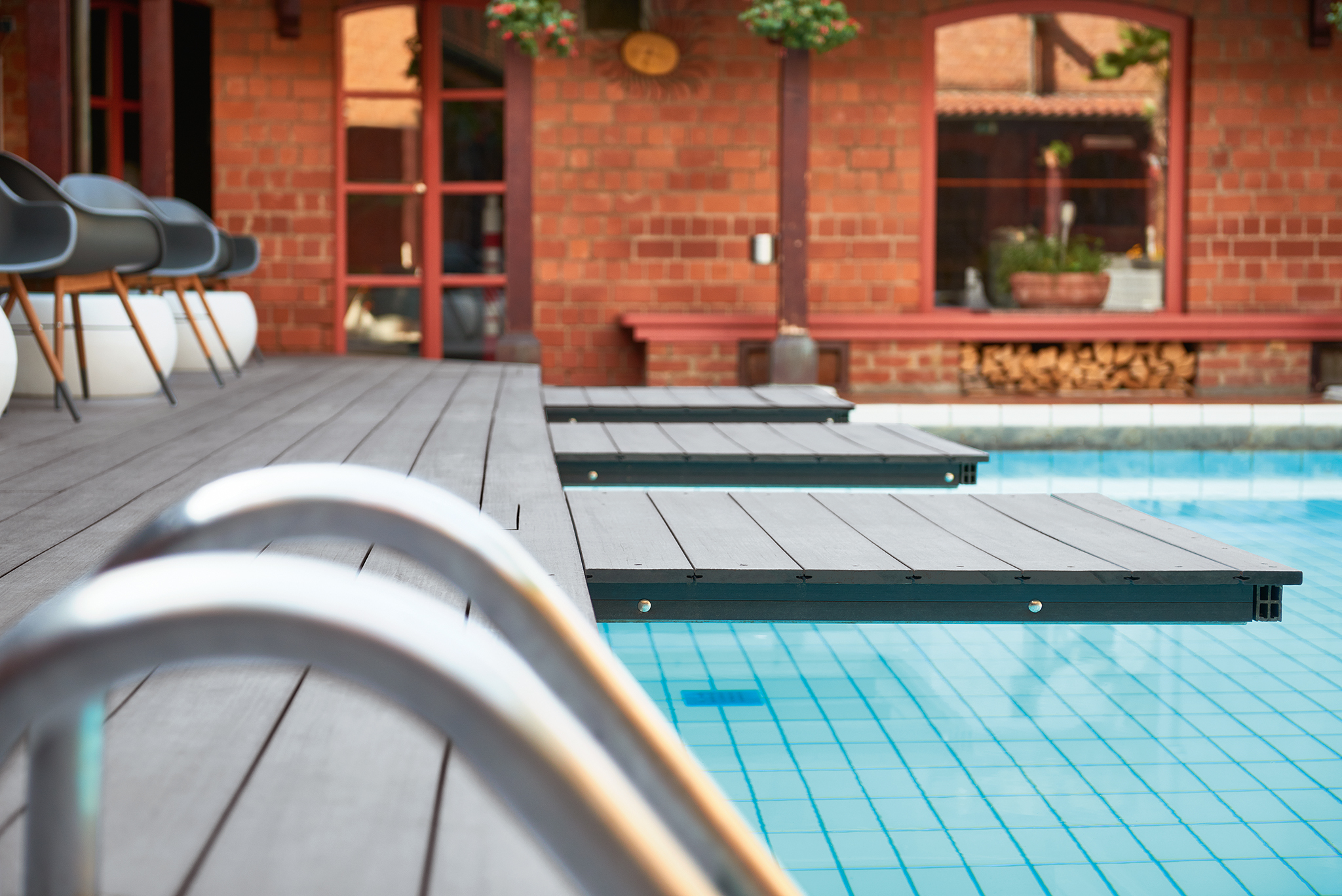 Dank der besonders schmalen Fugenbreite von 5 mm erhält der WPC Dielenbelag ein elegantes Aussehen.