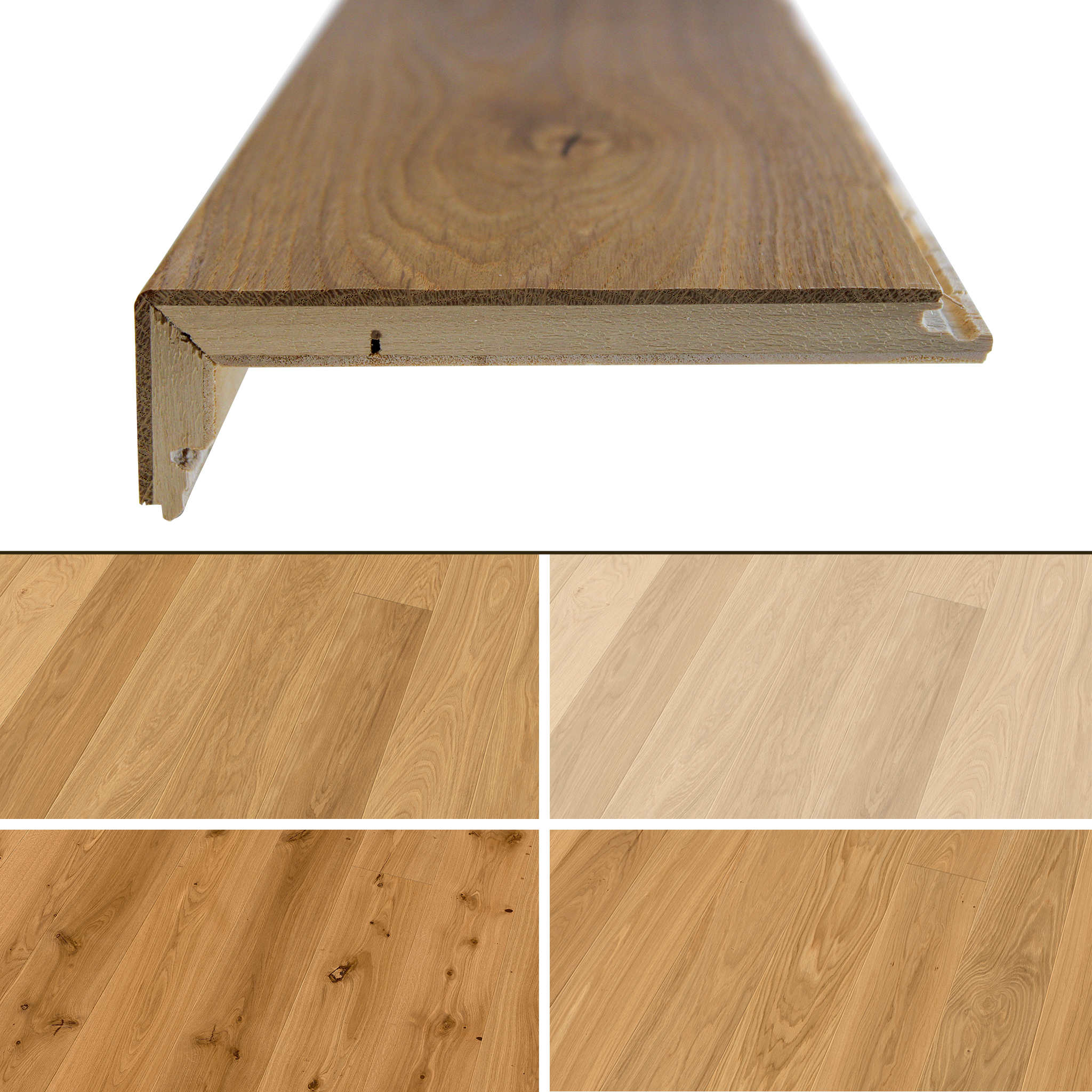 Die Treppenkanten im L-Profil schaffen einen bündigen Abschluss und sind besonders pflegeleicht. Erhältlich in vier ausgewählten Oberflächen unserer PARAT® 190 Landhausdielen-Serie.