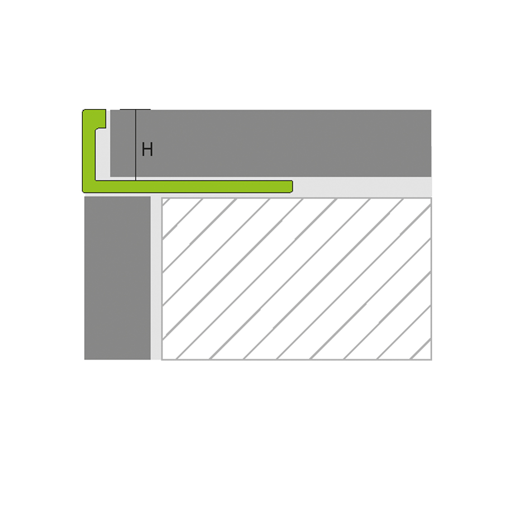 Das formschöne Winkelabschlussprofil PROFLOOR schafft sicher und einfach saubere Kanten und Abschlüsse für Bodenbeläge wie Keramik, Parkett, Naturstein, Teppich, Laminat und sonstige Bodenbeläge.