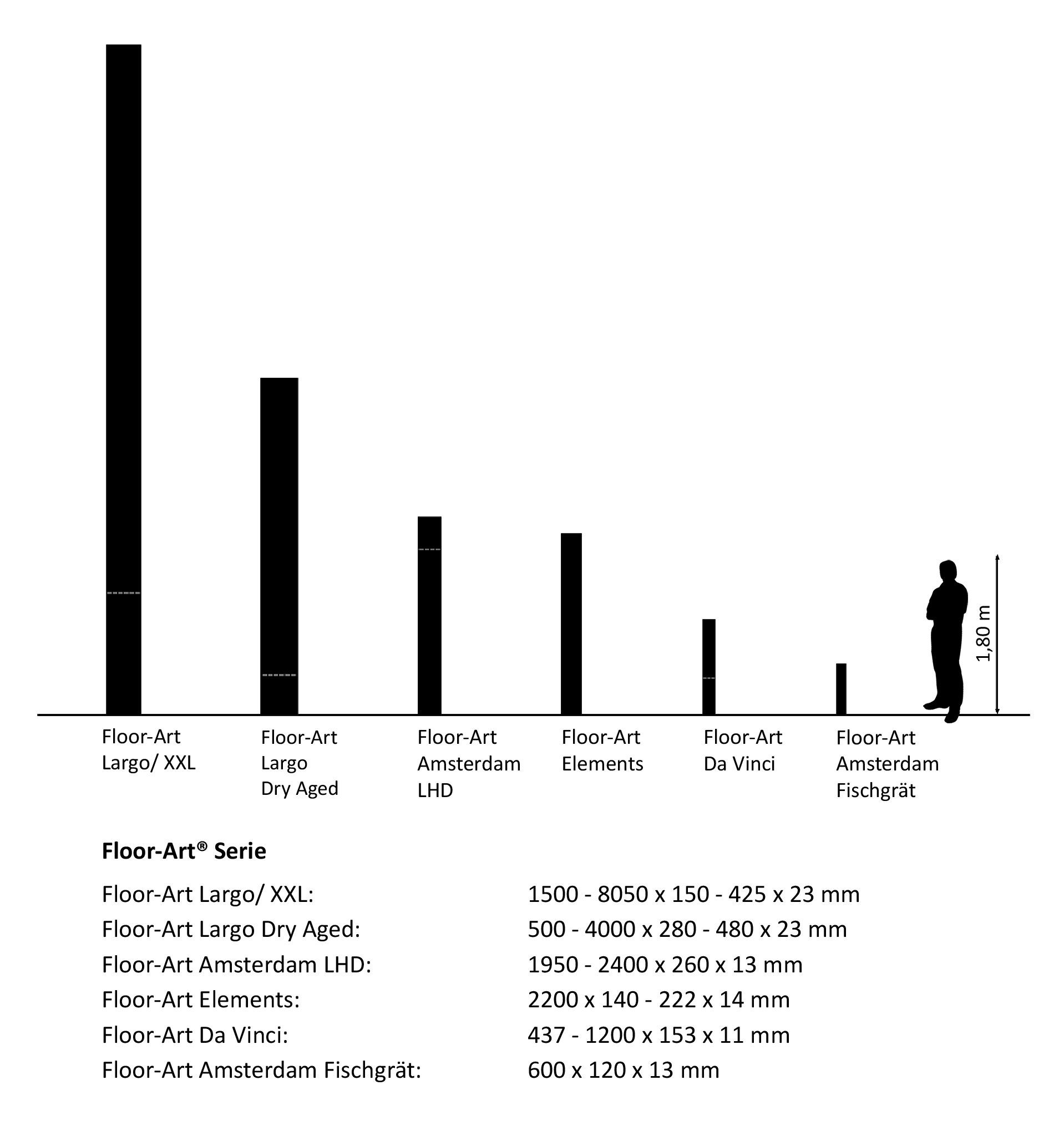 Floor-Art® Largo ist eine Holzdiele, die den Raum von Anfang bis Ende durchlaufen kann. Durch diesen großzügigen Effekt setzt sich jede einzelne Langdiele wirkungsvoll in Szene.