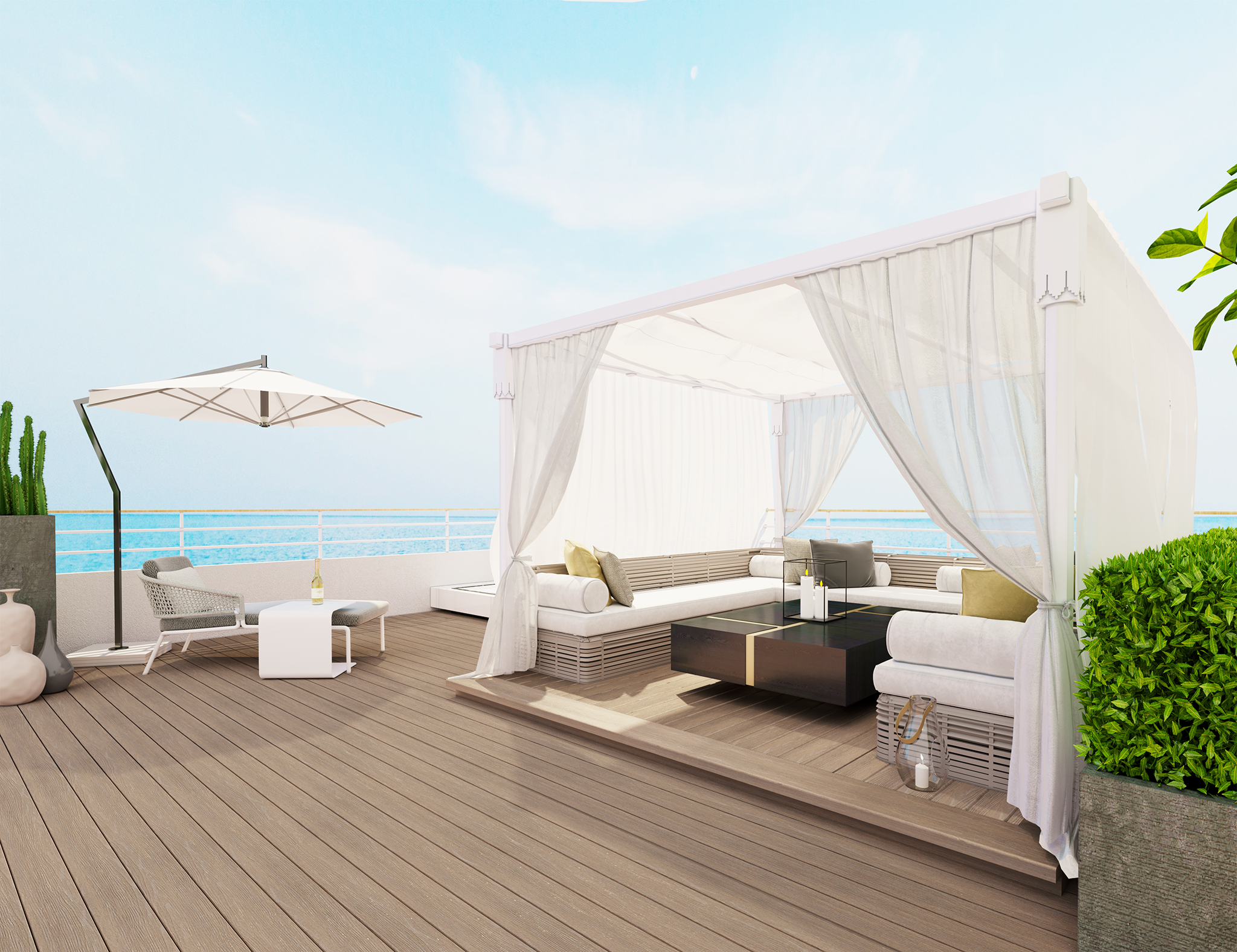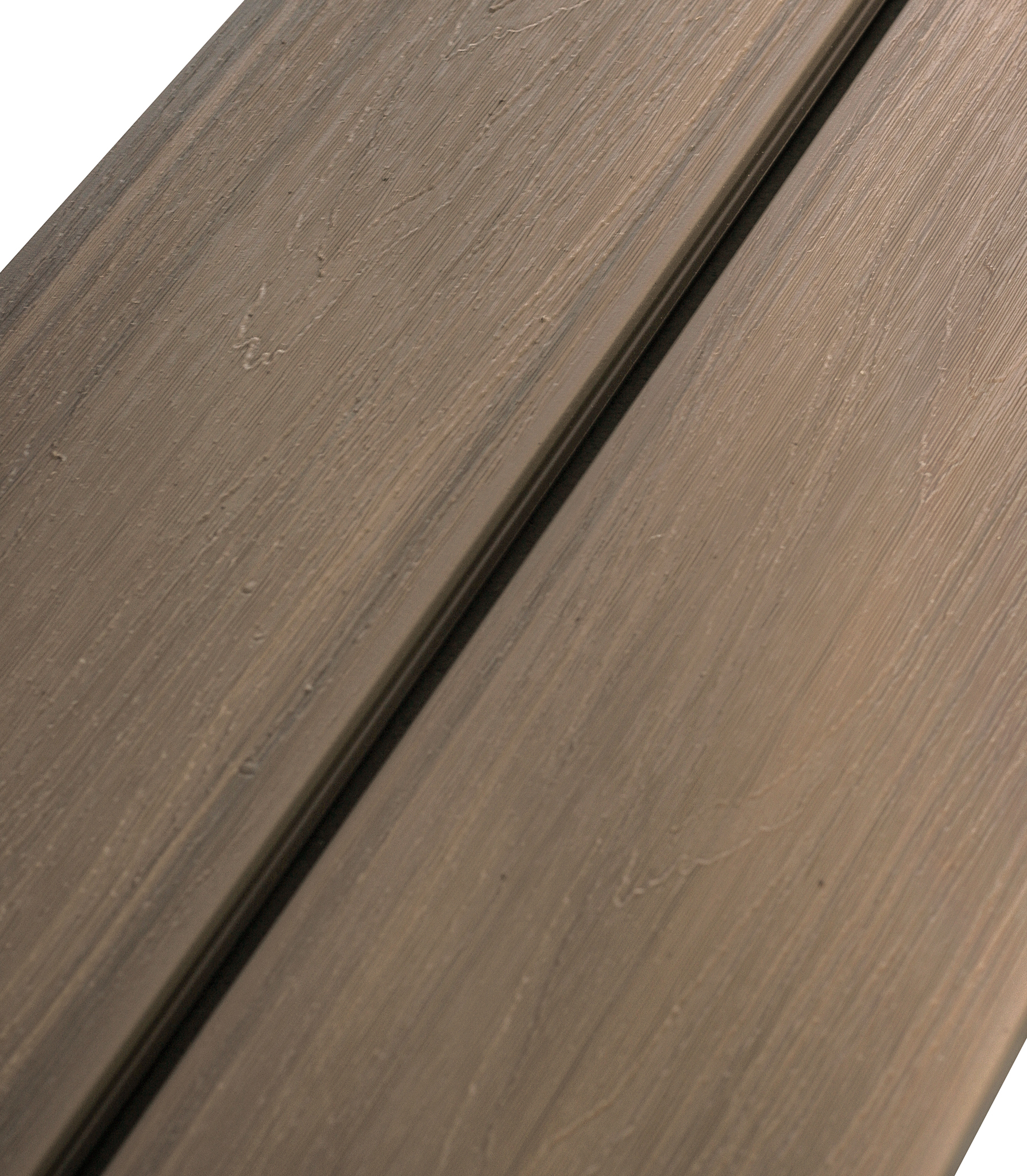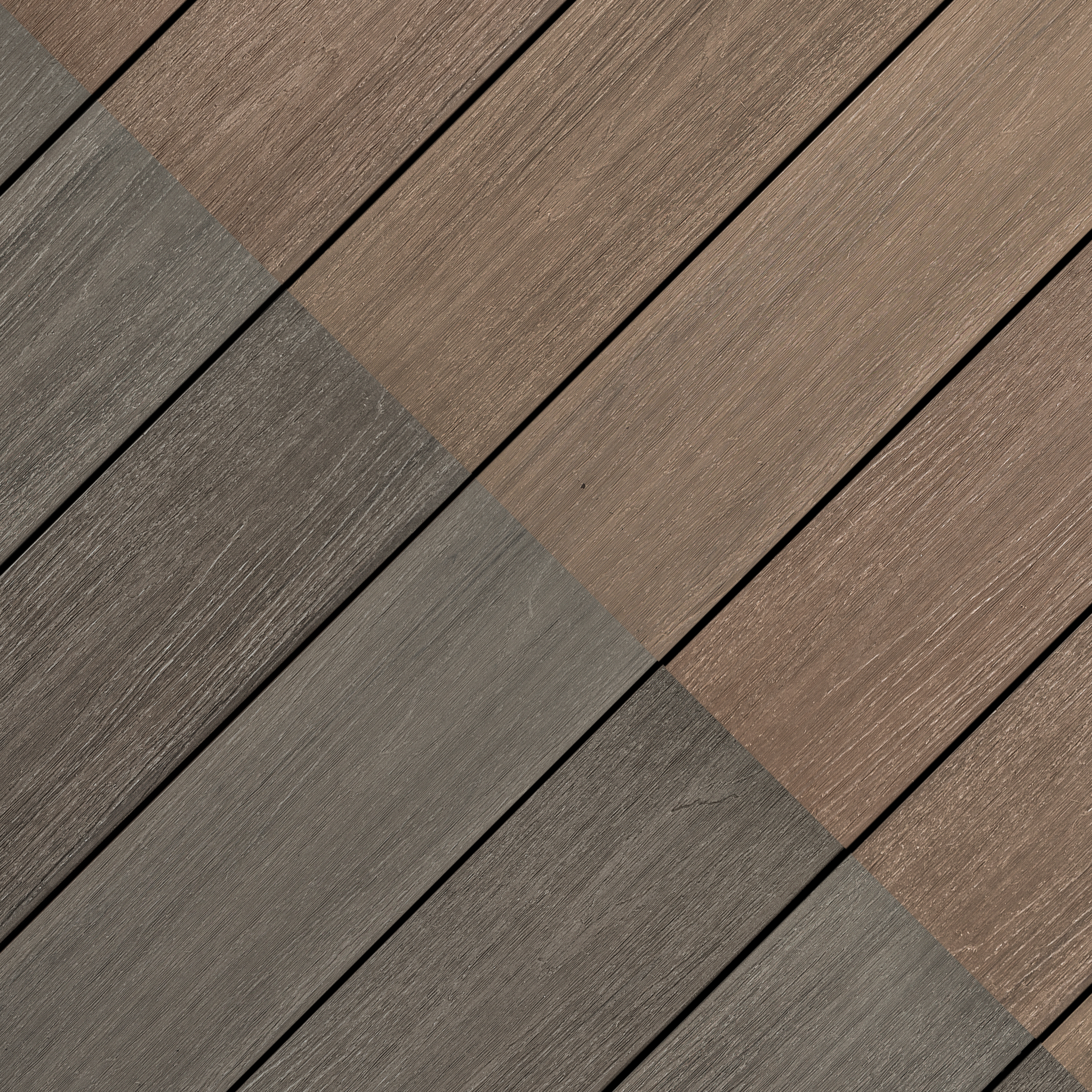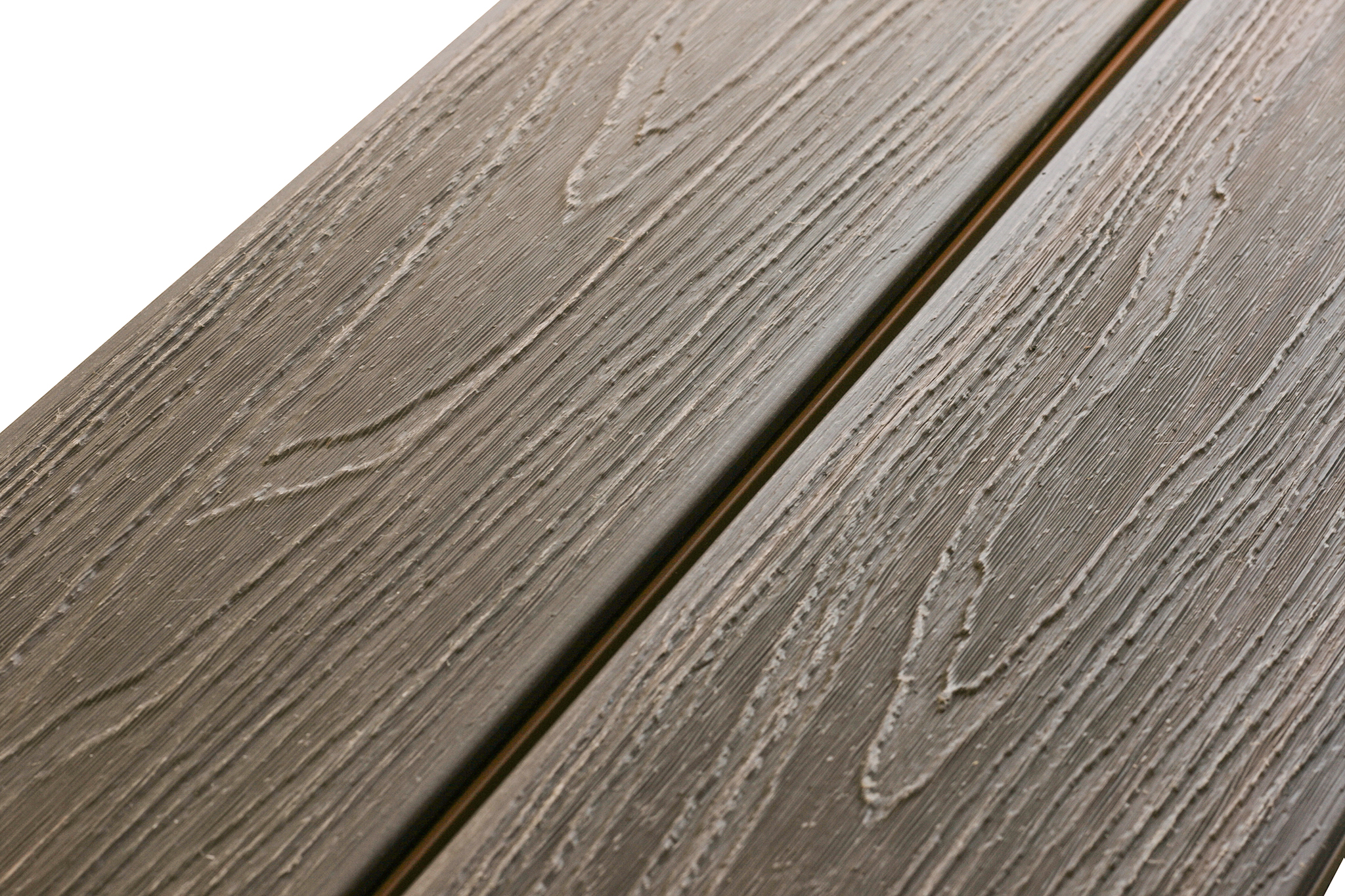 Mit den hochwertigen WPC Terrassendielen von Parkett Hinterseer in vier modernen Farbvarianten verwandeln Sie Ihren Außenbereich in einen Ort der Entspannung. Das Besondere der dekorativen Wendedecks in dritter Generation co-extrudierter Terrassendielen ist die Haptik ihrer holzähnlichen Oberfläche mit tiefen Rillen: wählbar sind die Varianten Teak/Walnuss und Silbergrau/Antique. Dank hoher UV-Beständigkeit bleibt der jeweilige Farbcharakter über viele Jahre erhalten. Die vollflächige Ummantelung (Coextrusion) des WPC-Massivdecks liefert einen zusätzlichen Schutzmantel, der die Oberfläche vor dem Eindringen von Wasser und Schmutz schützt.