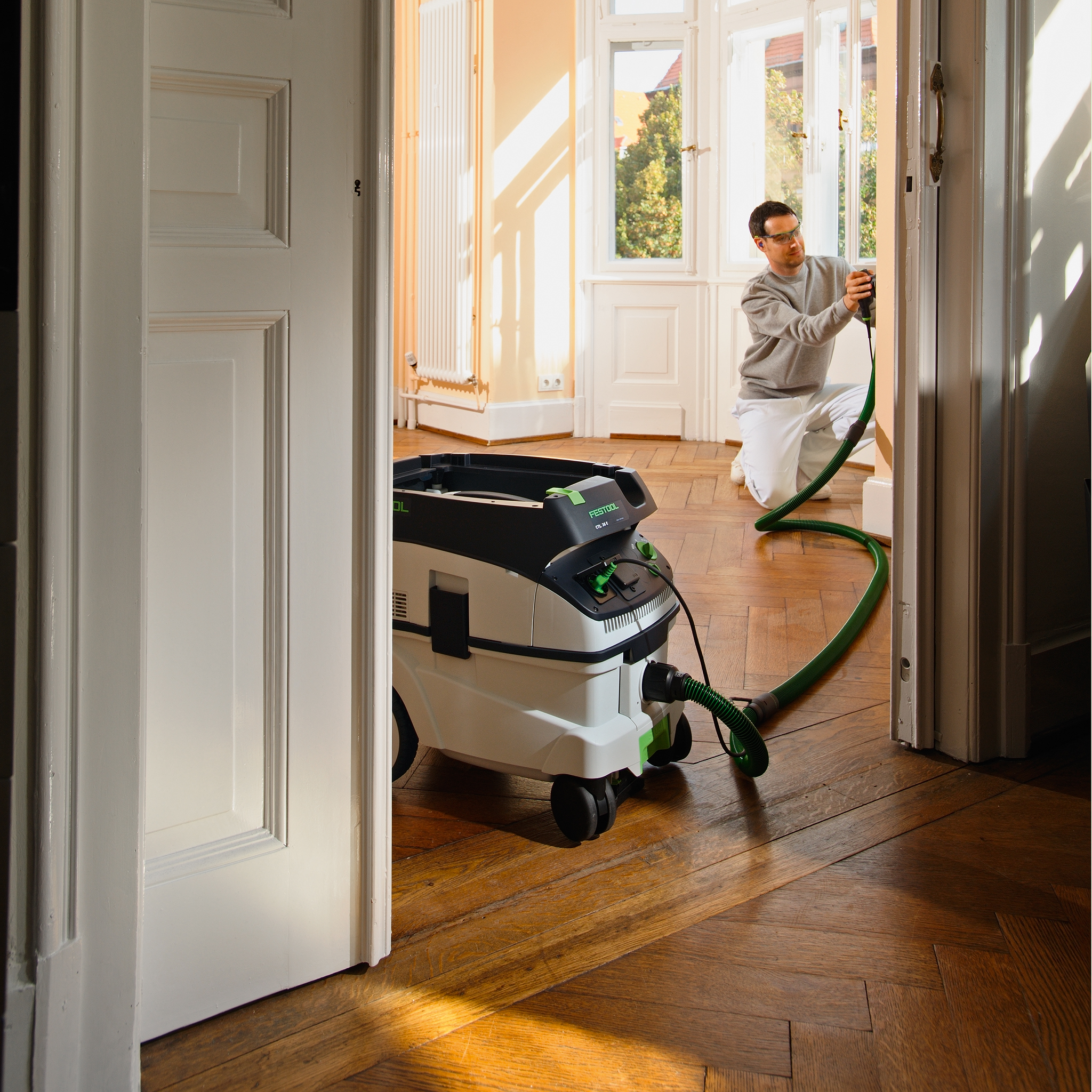 Mit dem leistungsstarken Festool Absaugmobil mit regulierbarer Saugleistung reinigen Sie Flächen und Böden mühelos und effizient. Die kompakte Hochleistungsturbine gewährleistet eine konstante hohe Saugleistung, während die Antistatik-Funktion zuverlässig vor statischer Aufladung beim Arbeiten schützt.