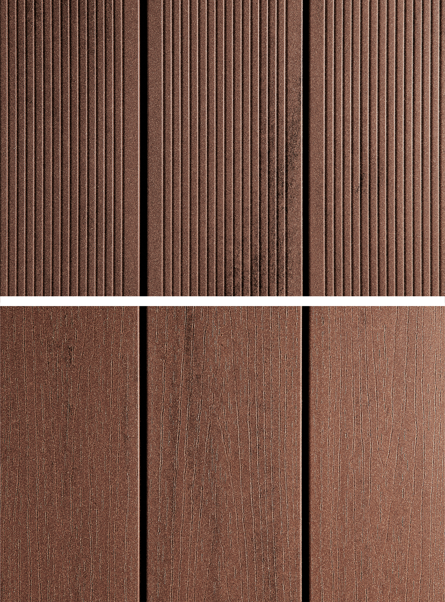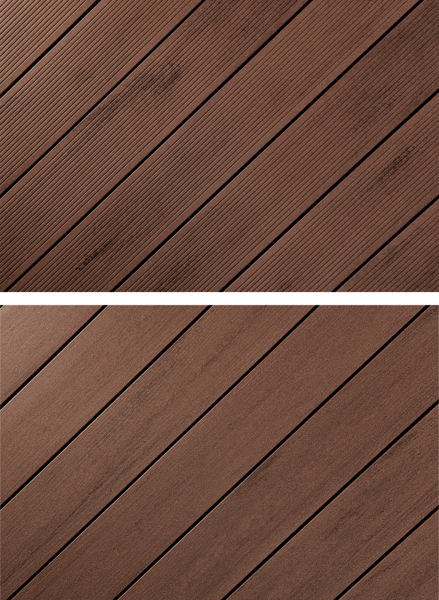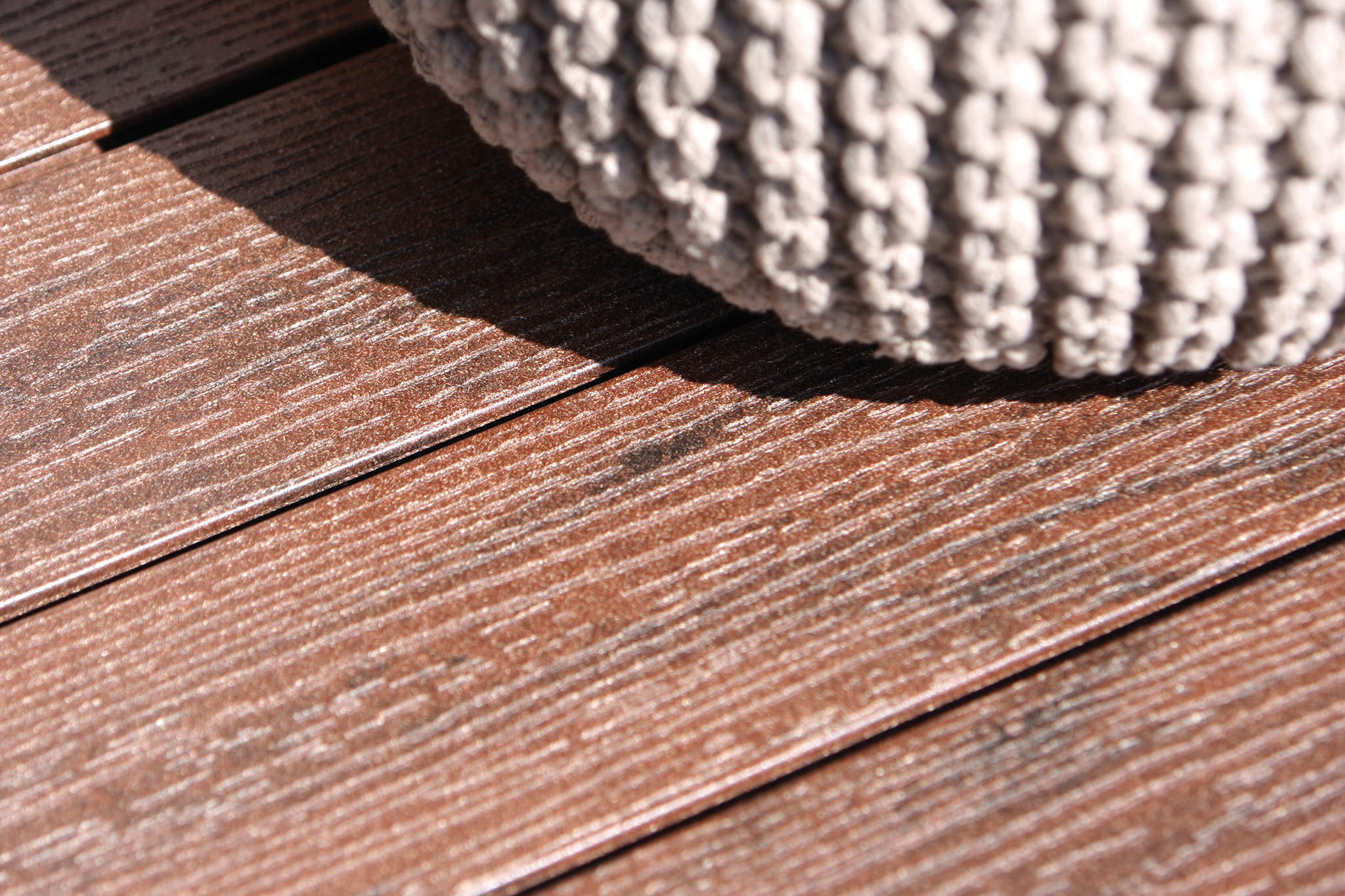 - WPC-Terrassendiele mit natürlich anmutendem Farbverlauf und individueller Maserung/Oberflächenstruktur