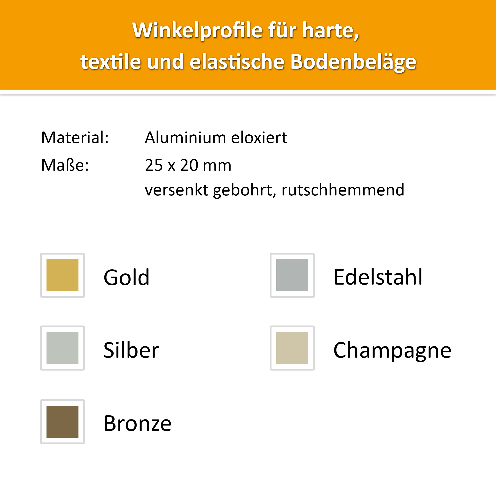 Das Winkelprofil kann für harte, textile und elastische Bodenbeläge sowie als Abschluss von Treppenkanten mit Bodenbelägen, wie Parkett und Laminat, verwendet werden. Es lässt sich auch nachträglich bei Renovierungen oder Auffrischaktionen auf vorhandene Beläge montieren.