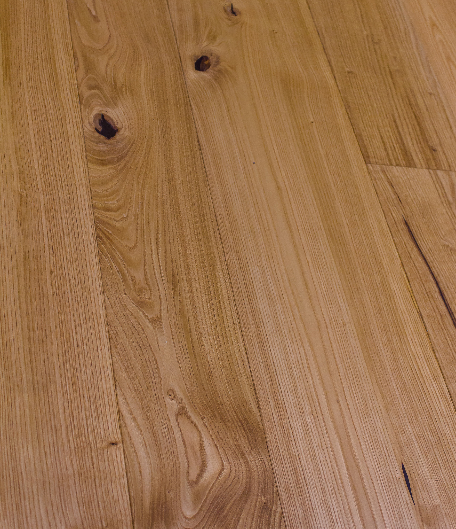 Die Oberfläche der Holzdiele ist roh geschliffen.