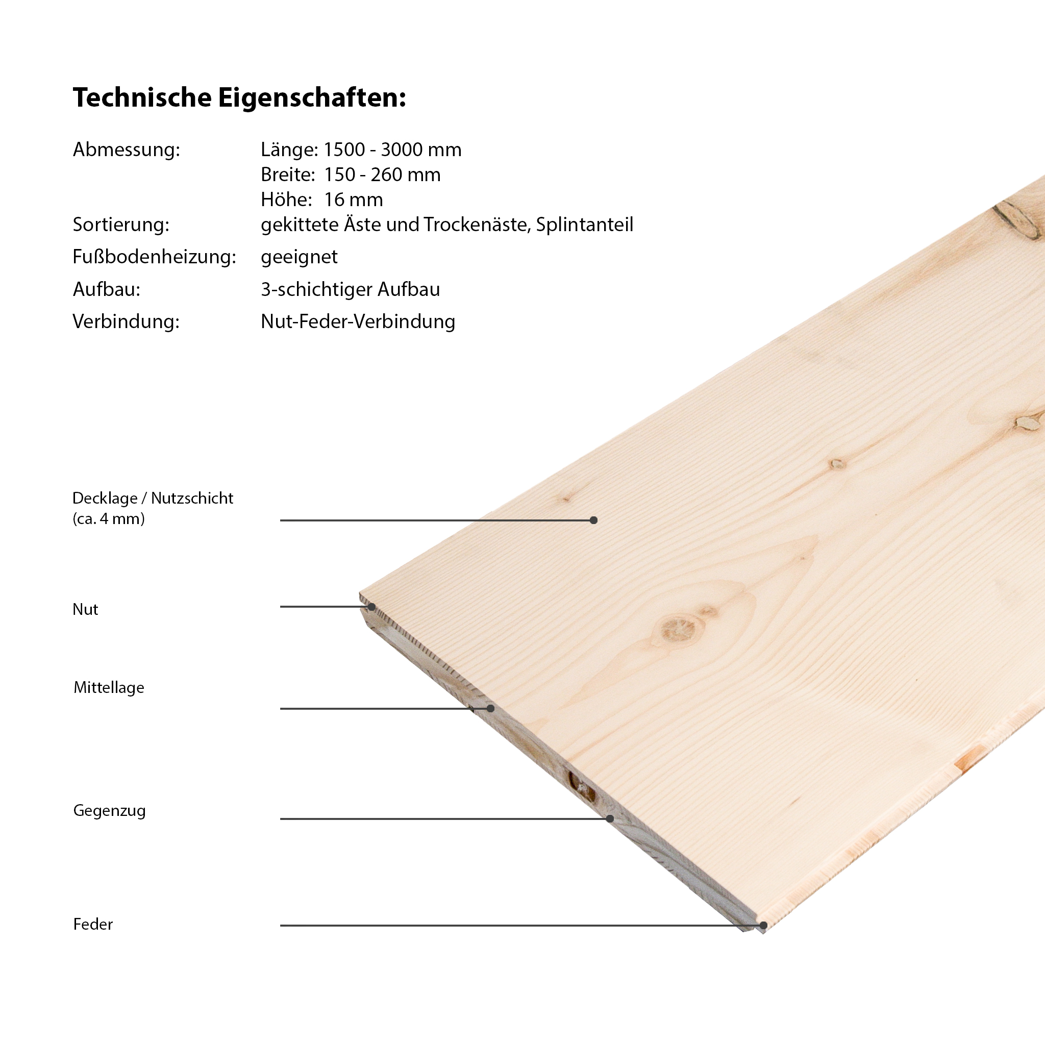 1500-3000x150-260x16mm,gebürstet,gefast, 3-Schicht, Langdiele