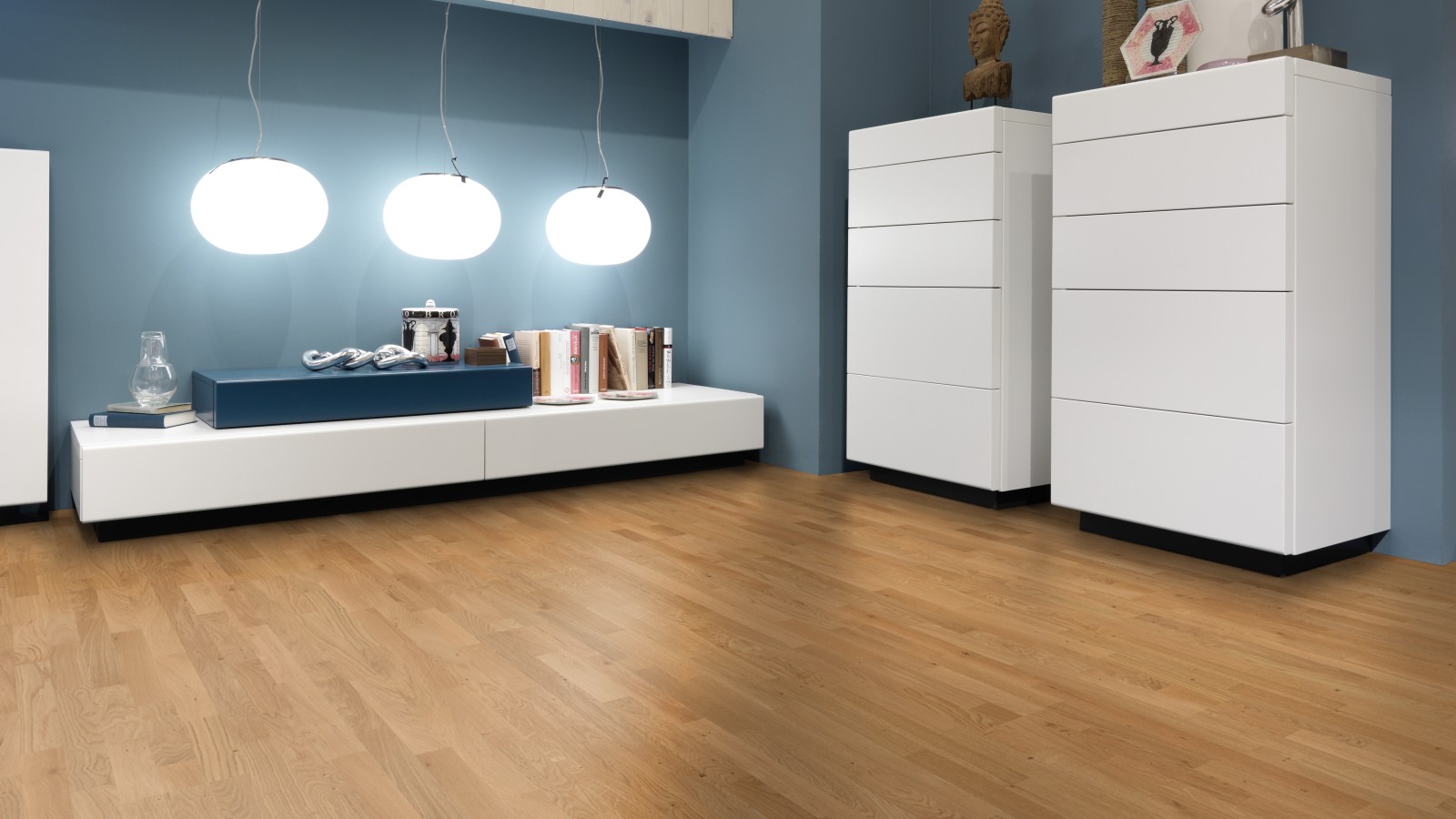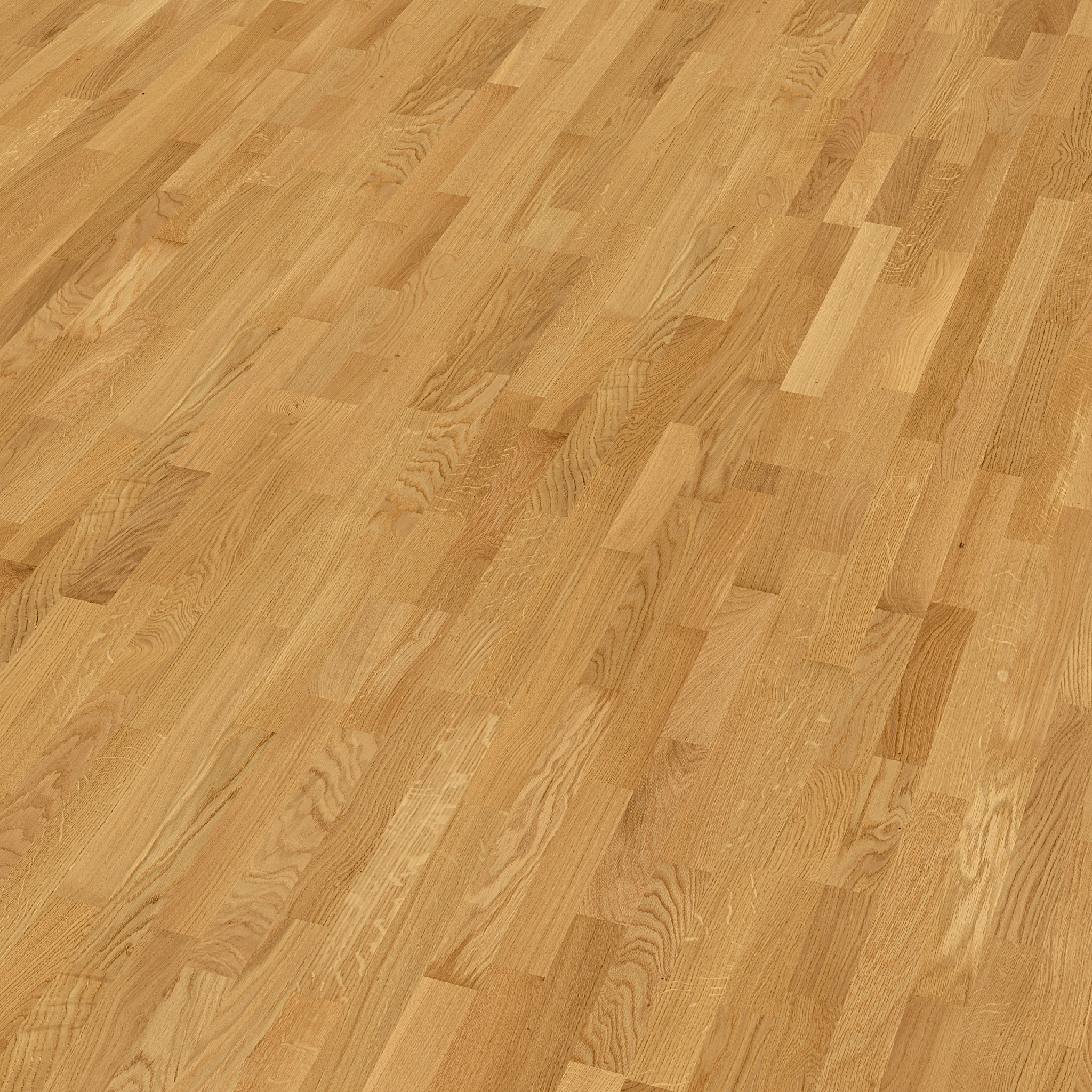 Neben der hochwertigen und pflegeleichten UV-Versiegelung können Sie geölt/gewachste sowie gebürstete, gefaste und farbig behandelte Oberflächen wählen. Der Einsatz einer Edelholznutzschicht schont Ressourcen und die Dreischichtverleimung schafft Stabilität.