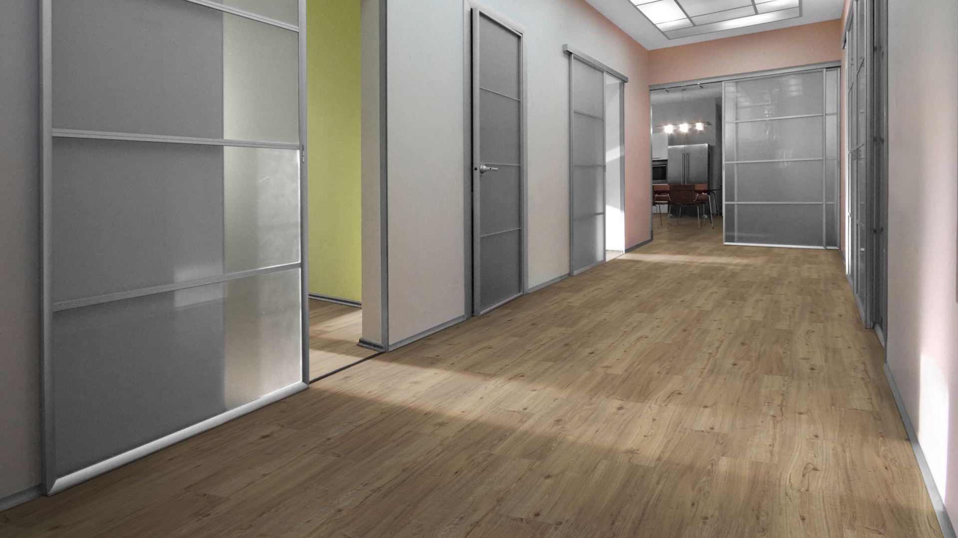 Die Produktlinie Synchron umfasst ausschließlich Vinyl, welches verklebt werden muss und mit dieser Verlegeart zusätzliche Stabilität erhält.