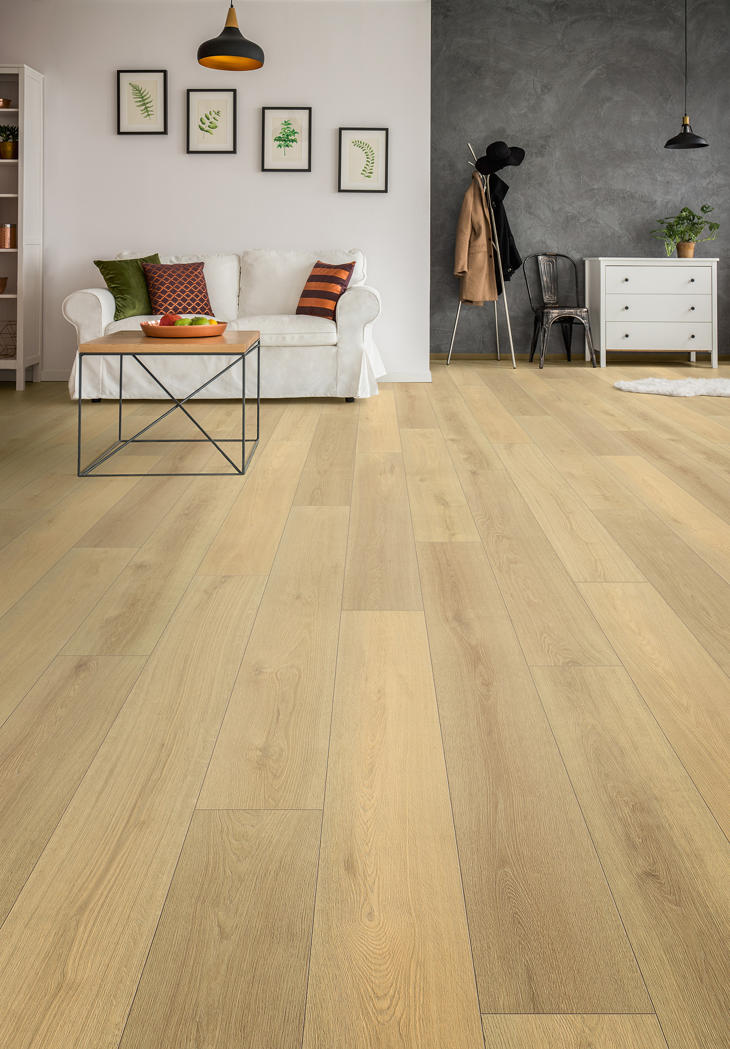Mit einer Länge von ~2m sind die einzelnen Dielen sehr lang. Auch mit der Breite von 24,5 cm ist diese über dem Standardmaß. Die XL Dielen wirken hochwertig und sind nur schwer von einem Parkettboden zu unterscheiden. Insbesondere große und offene Räume kommen mit diesem Laminat zur Geltung. Von einer Verlegung von kleinen Räumen unter 15qm ist meist abzuraten.