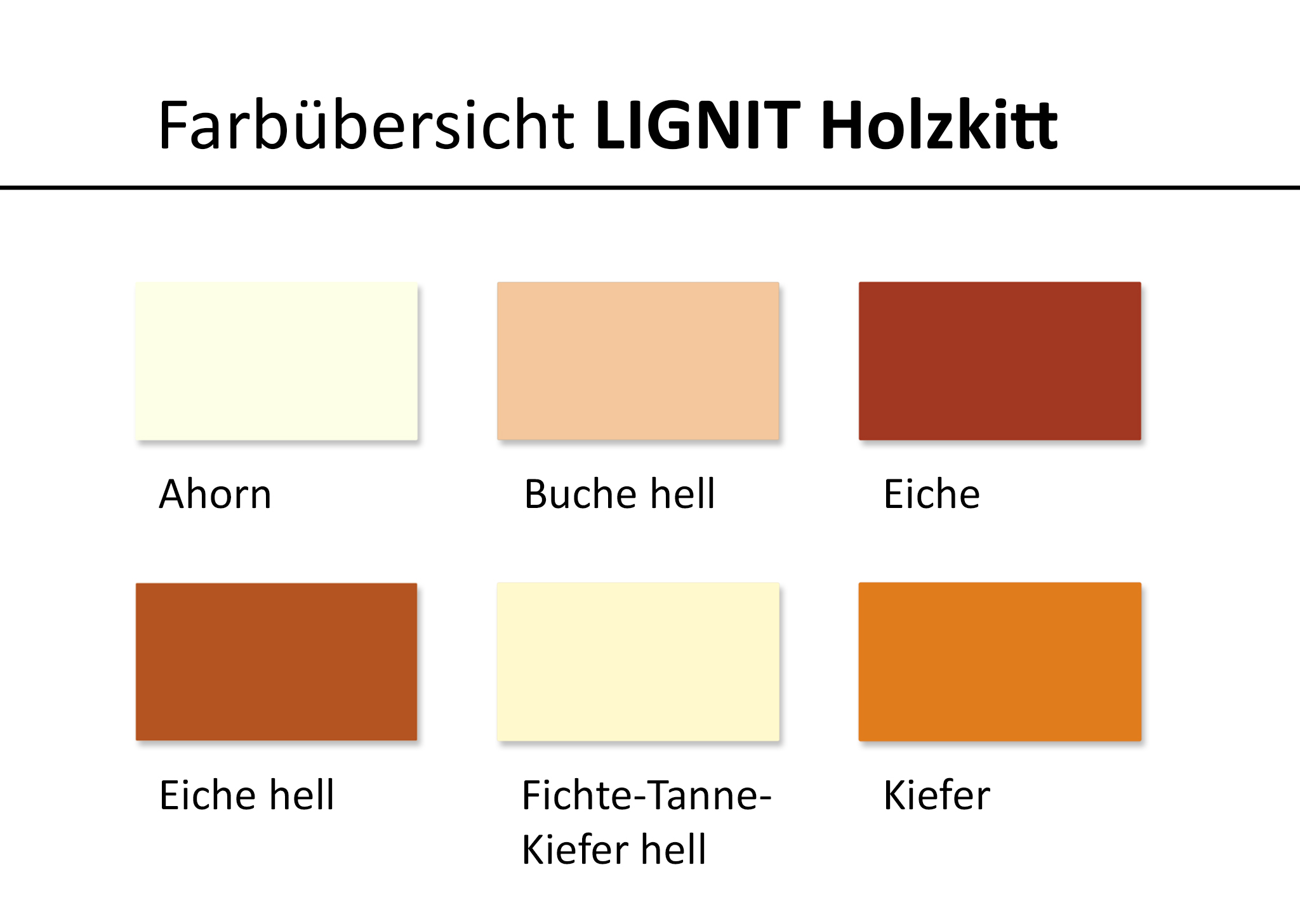 LIGNIT Holzkitt, auf Holzbasis hergestellt, eignet sich zum Ausbessern und Verschließen von kleinen Rissen, Kratzern und Löchern in Holzoberflächen. Nach der Trocknung können die Reparaturstellen beliebig bearbeitet werden. Bei größeren Kittstellen wird die Trockenzeit verkürzt, wenn Sie mehrere dünne Schichten auftragen.