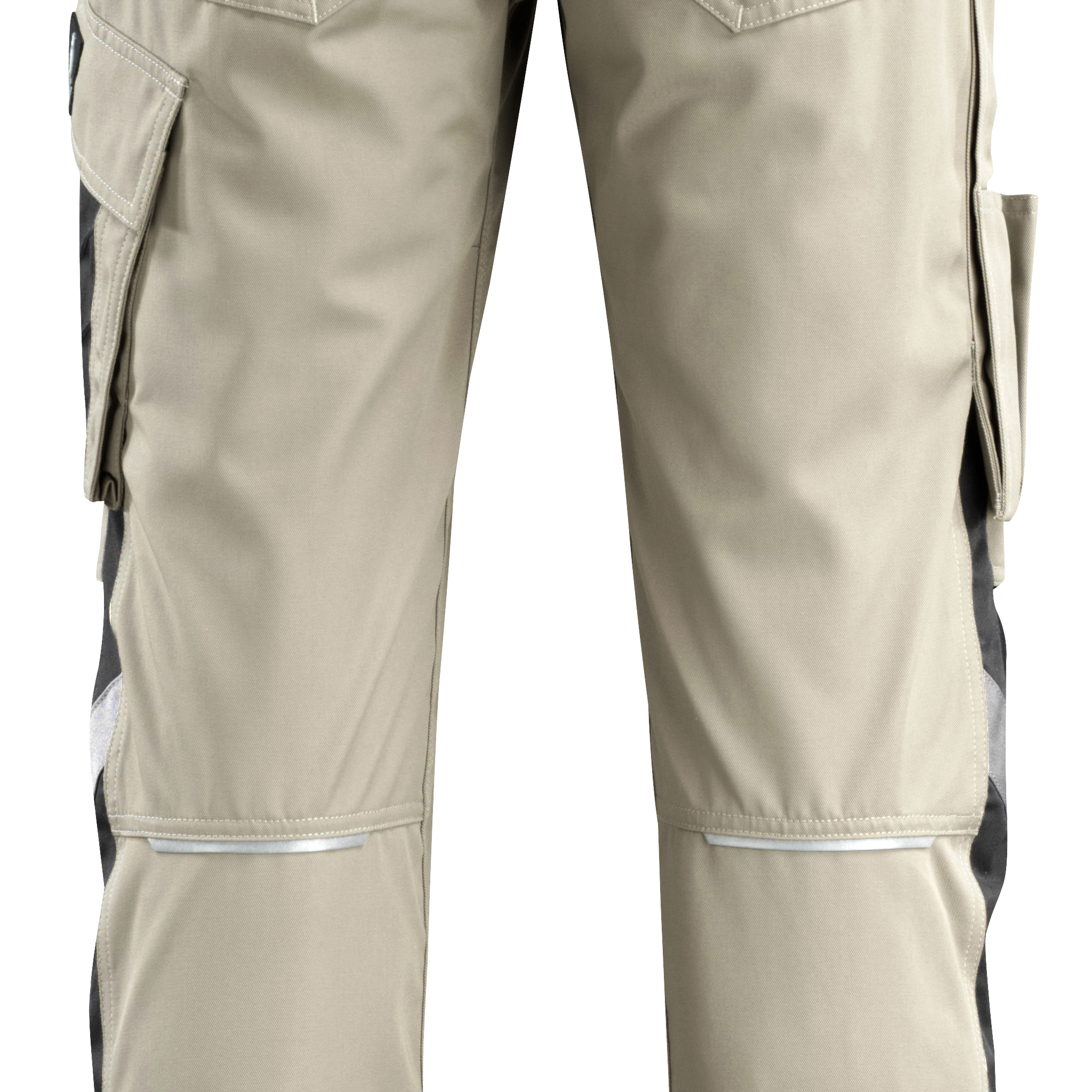 Dreifache Kappnähte an den Beinen und im Schritt gewährleisten eine lange Haltbarkeit. Mit Cordura®-Gewebe verstärkte Knietaschen mit Eingriff von oben und Patte, damit sich kein Schmutz sammelt. Cordura® ist für seine Verschleiß- und Durchstichfestigkeit weltweit bekannt. Dank Verstärkungen an strapazierten Stellen ist die Mascot Arbeitshose auch starken Belastungen gewachsen.