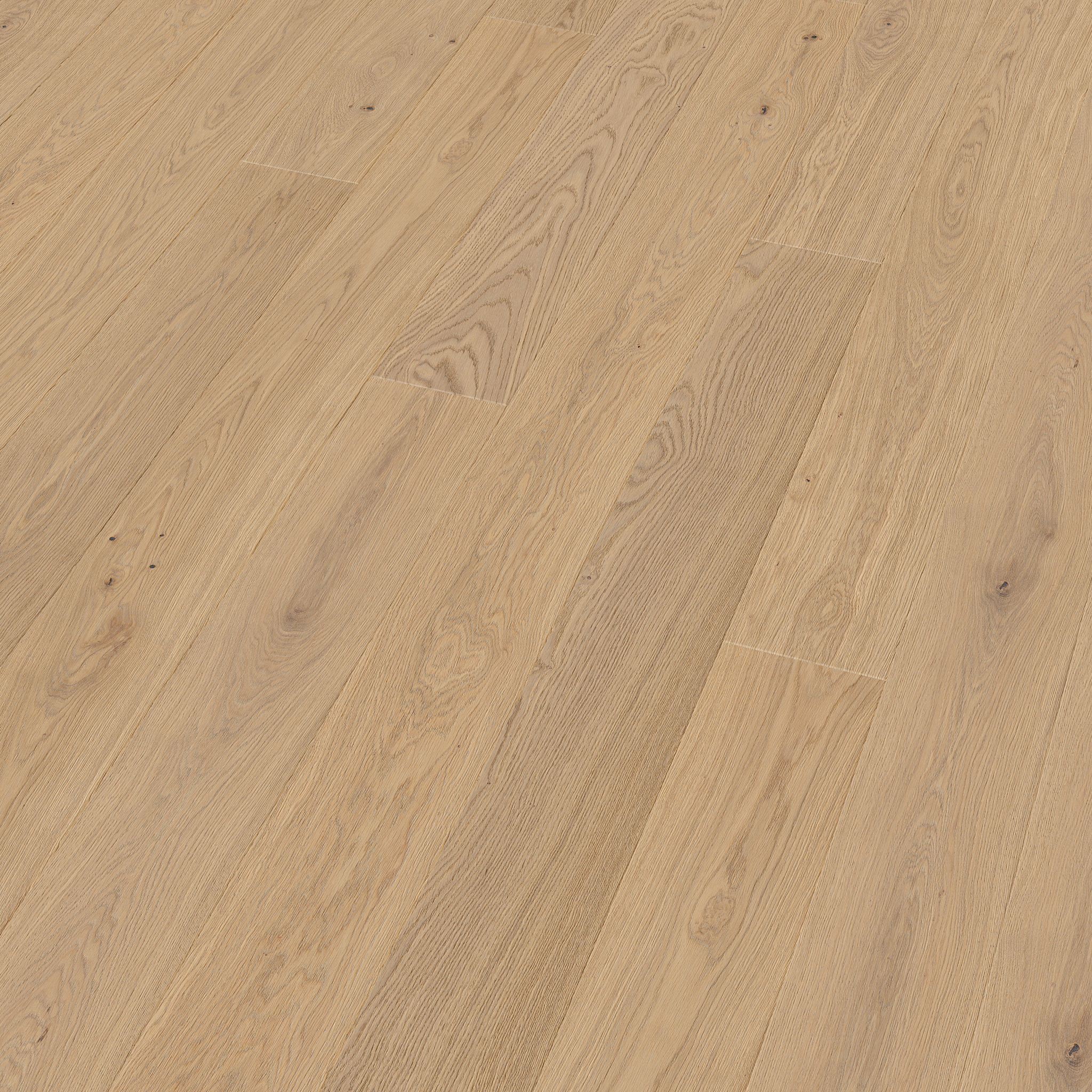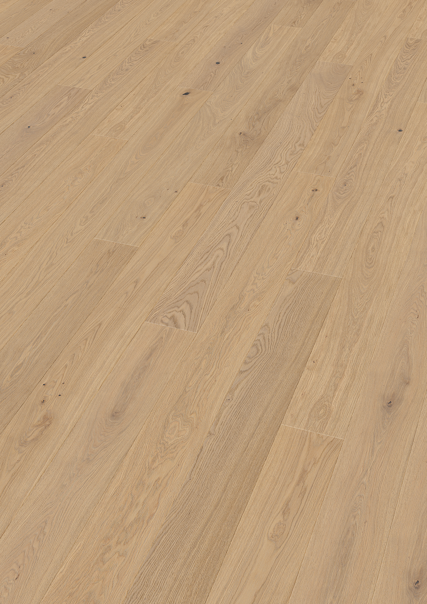 Neben der hochwertigen und pflegeleichten UV-Versiegelung können Sie geölt/gewachste sowie gebürstete, gefaste und farbig behandelte Oberflächen wählen. Der Einsatz einer Edelholznutzschicht schont Ressourcen und die Dreischichtverleimung schafft Stabilität und prädestiniert das Produkt für die Verlegung auf modernen Fußbodenheizsystemen.