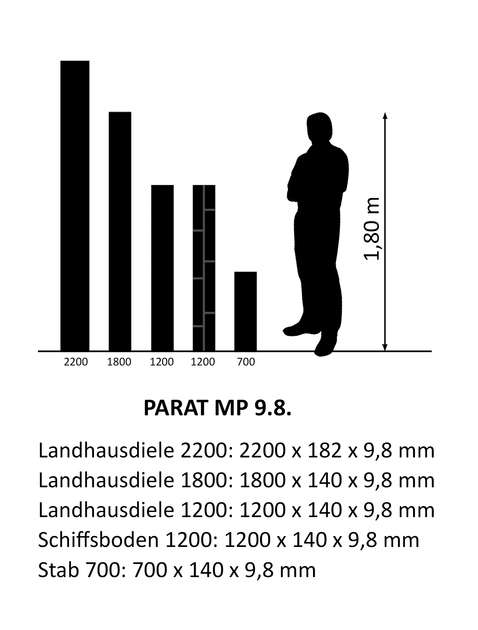 - Verfügbar als Zweischichtparkett (2-Stab Schiffsbodenoptik und Stab 700) und Dreischichtparkett (Landhausdiele 1200, 1800, 2200)
