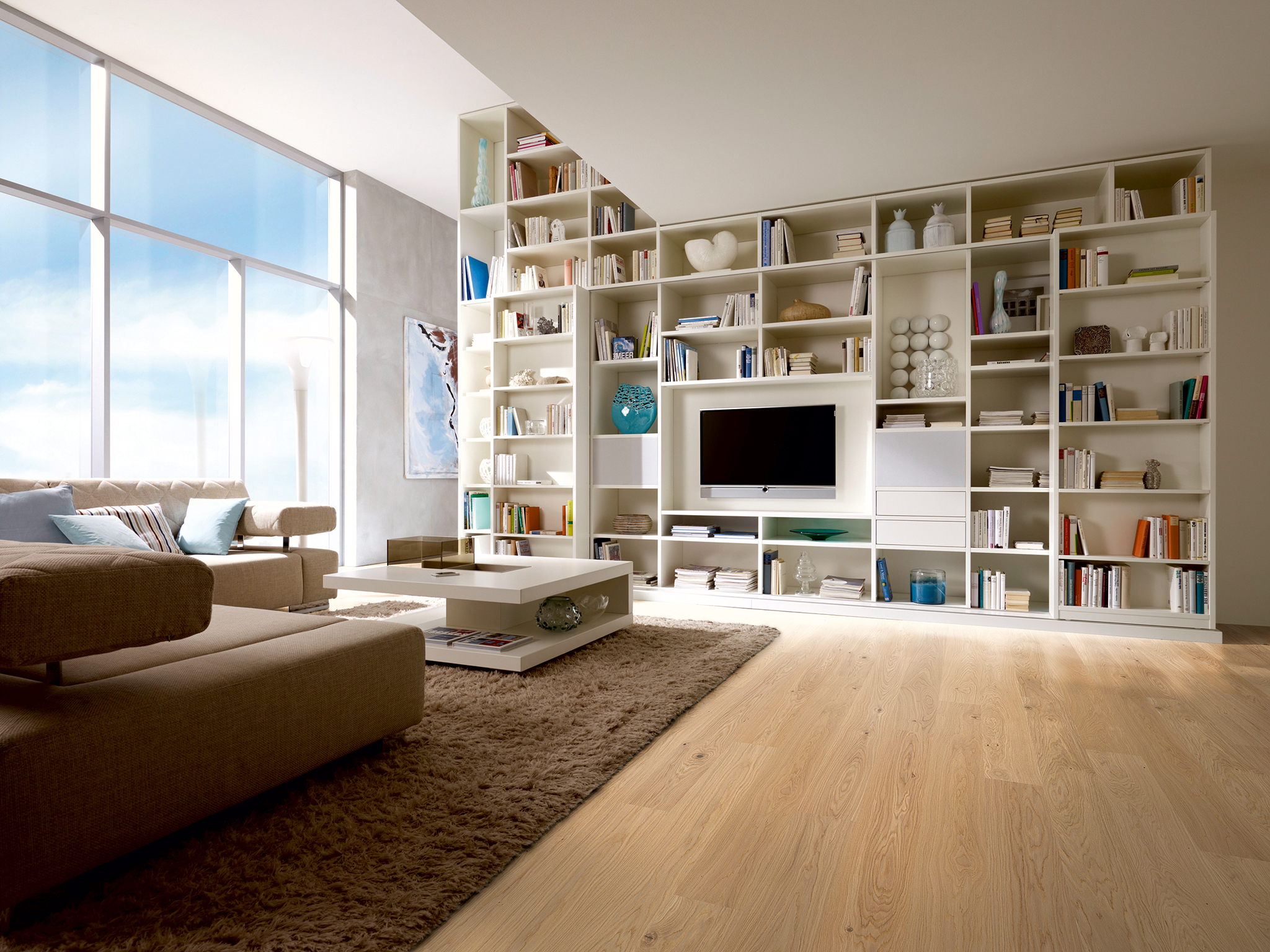 Landhausdiele 1800 und 2200 (3-Schicht-Parkett): Die großzügige Diele schafft eine weitläufige Optik und verleiht großen Räumlichkeiten mehr Ausdruck. Die Einzigartigkeit und Natürlichkeit des Werkstoffes Holz werden besonders gut zur Geltung gebracht.