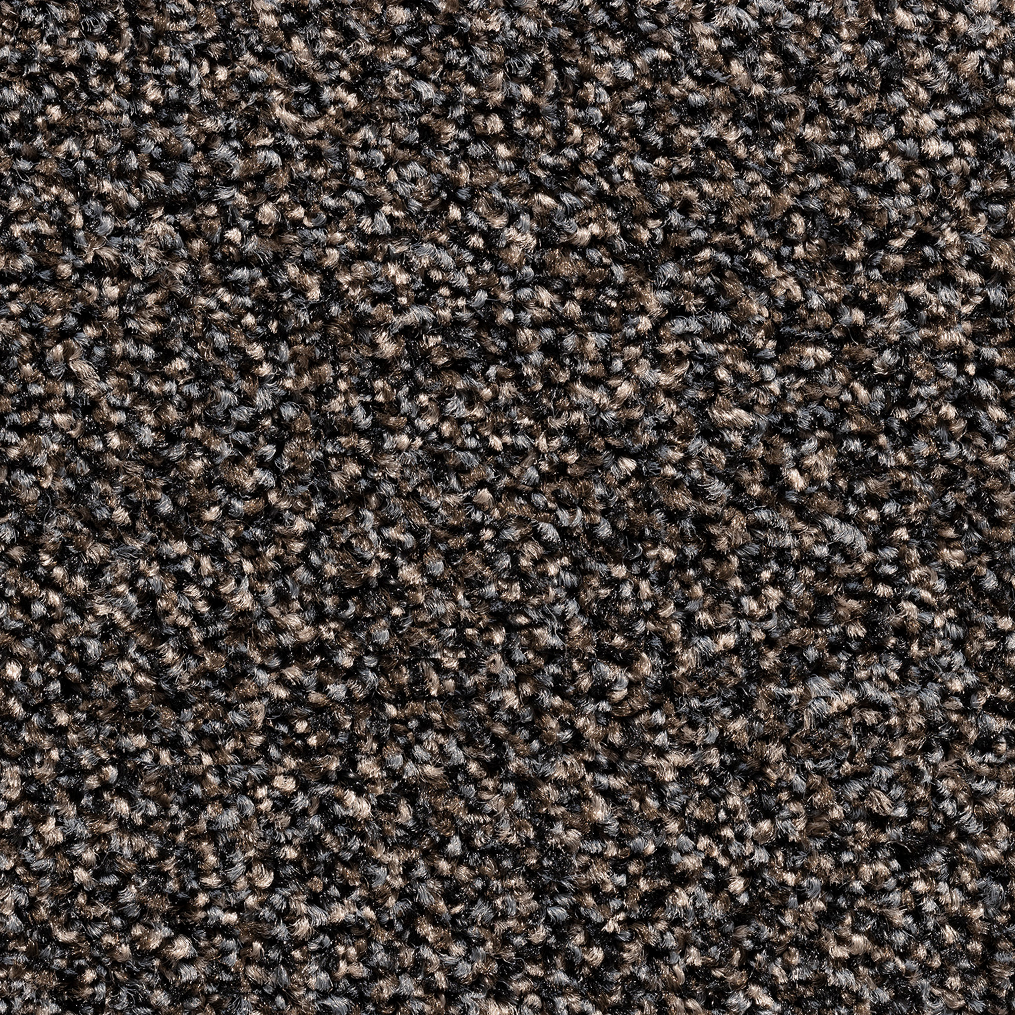 Die Teppichfliese Braun 97 kombiniert Schlingen in Grau, Hellbraun und Dunkelbraun zu einer lebendigen, vielschichtigen Optik. Durch das Zusammenspiel der unterschiedlichen Farbtöne entsteht eine spannende Tiefenwirkung, die dem Bodenbild Dynamik verleiht, ohne überladen zu wirken.
