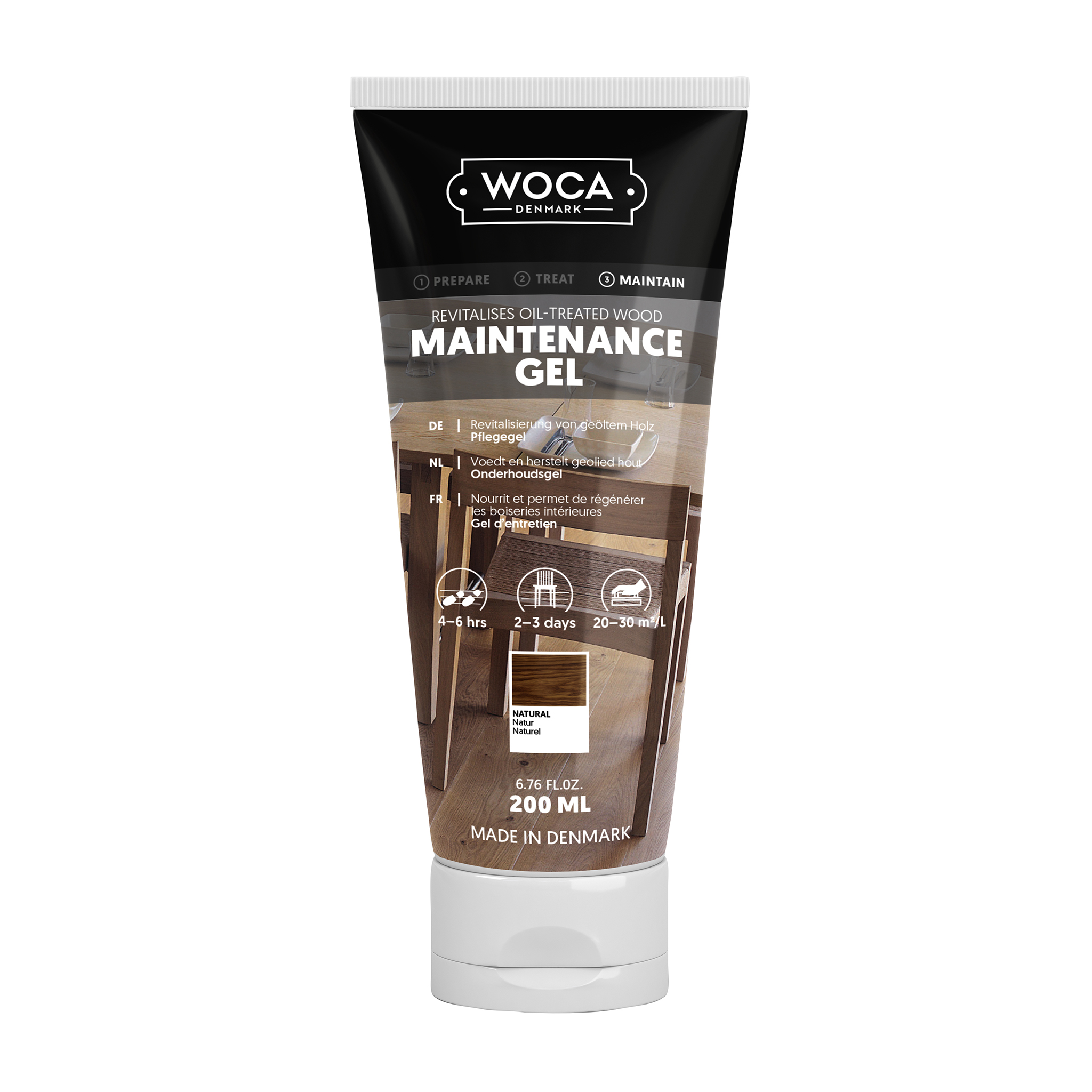 WOCA Maintenance Gel ist ein Pflegegel zur Erhaltung und Pflege geölter Holzoberflächen und Fußböden. Es ist auch für industriell geölte/UV-geölte Oberflächen zu empfehlen.