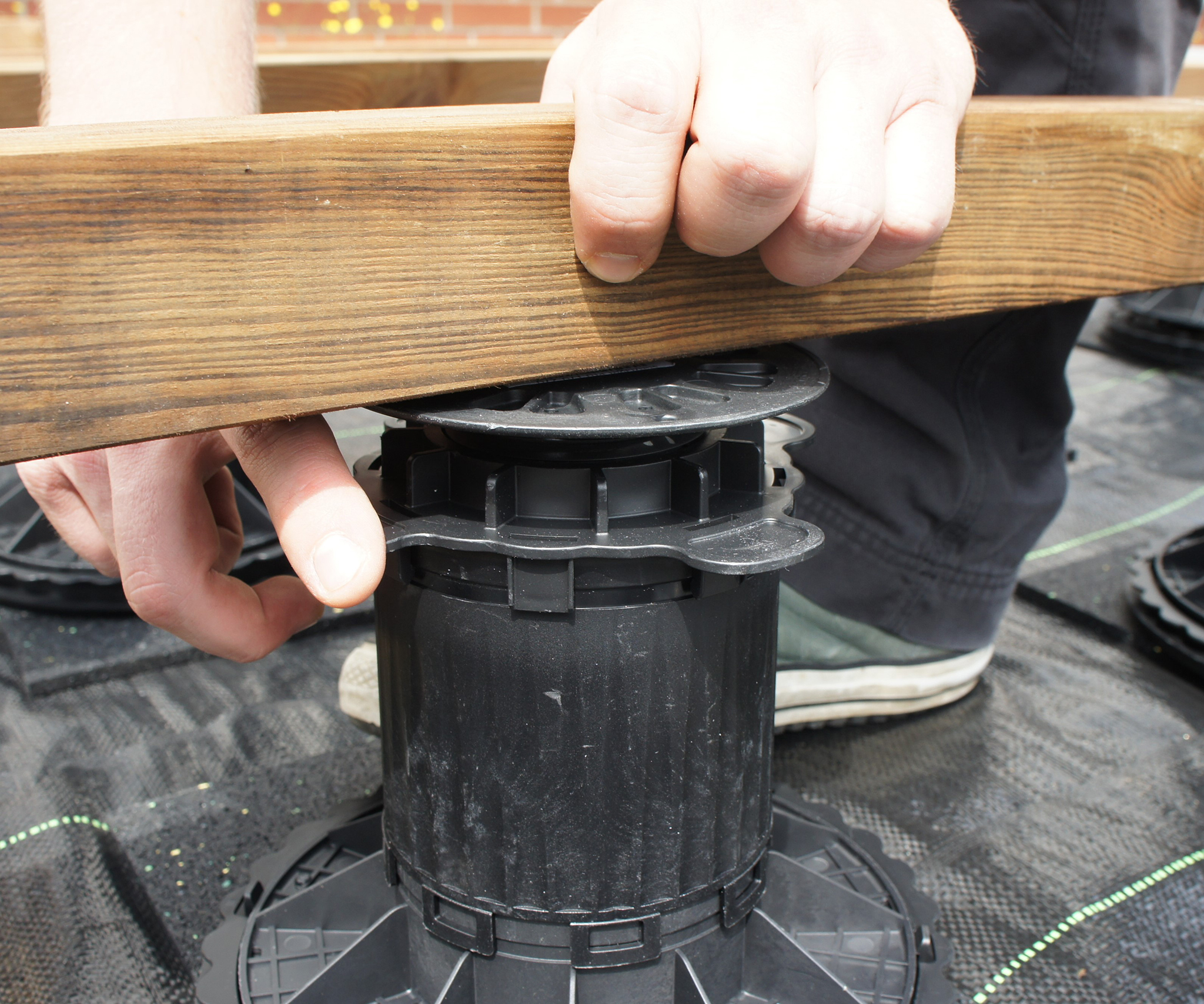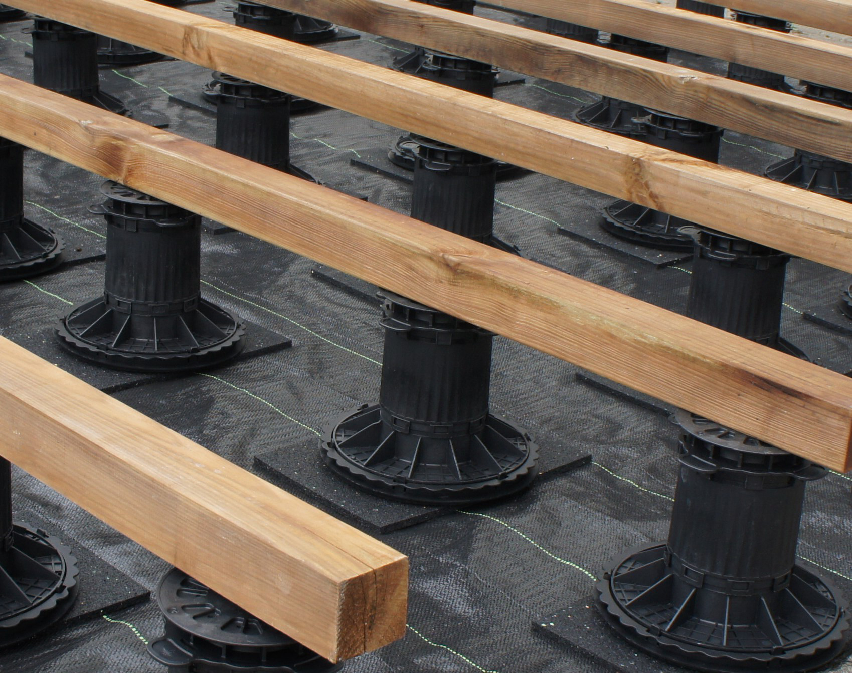 Differences in height and slope can be easily compensated with the terrace bases. The adjustable foot impresses with its low weight and very good ventilation. Due to the air circulation, the substructure is reliably protected against waterlogging and ground frost. In addition, the swelling and shrinking behavior is greatly reduced.