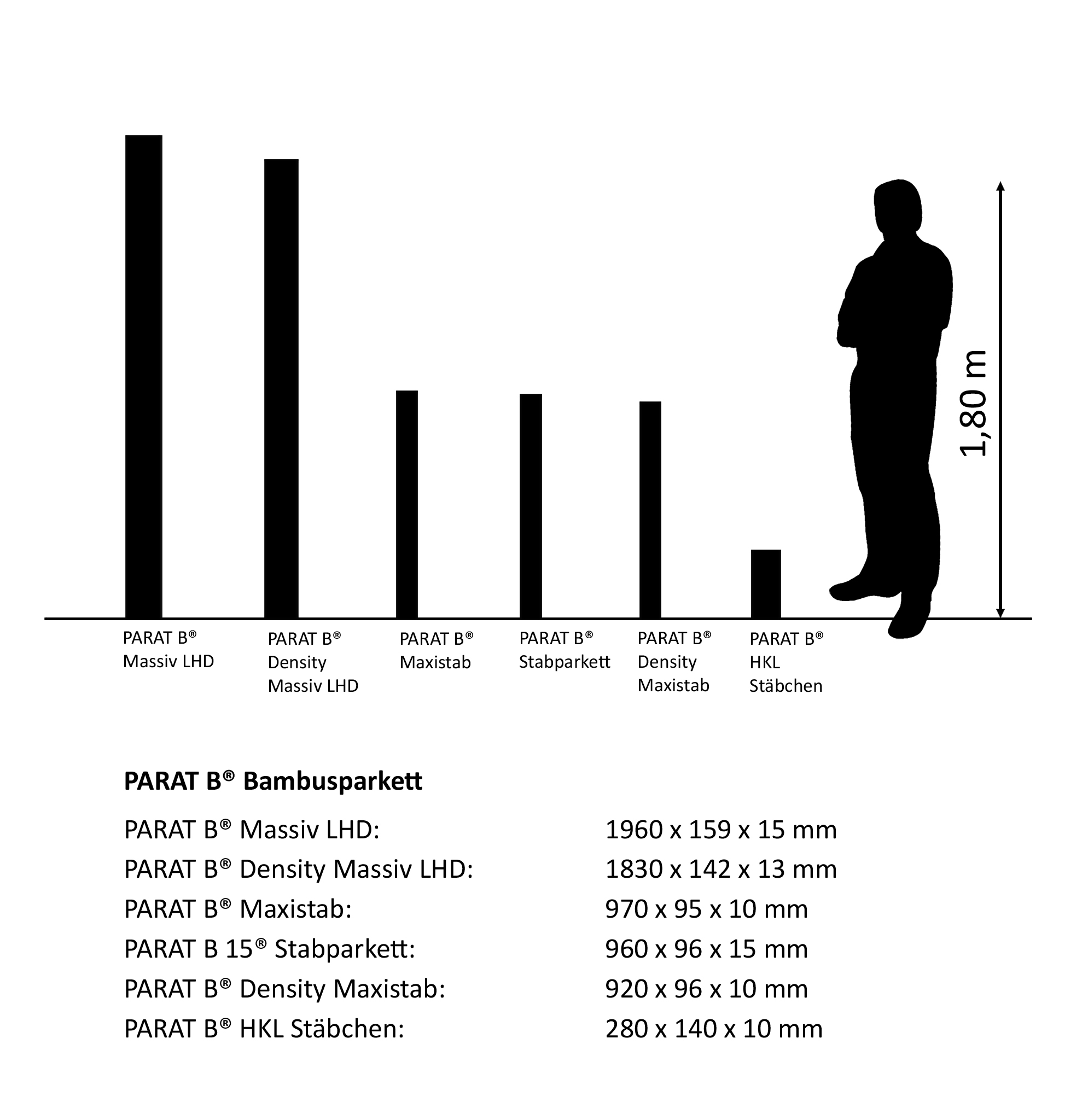 Small dimensions - great qualities. The two-layer-bamboo flooring consists of a 4 mm wear layer, two bamboo layers and a cross-pressed backing. The solid wood flooring is perfect for use in rooms that only allow a small structural height. Use bamboo parquet for example in areas with a high usage frequency.