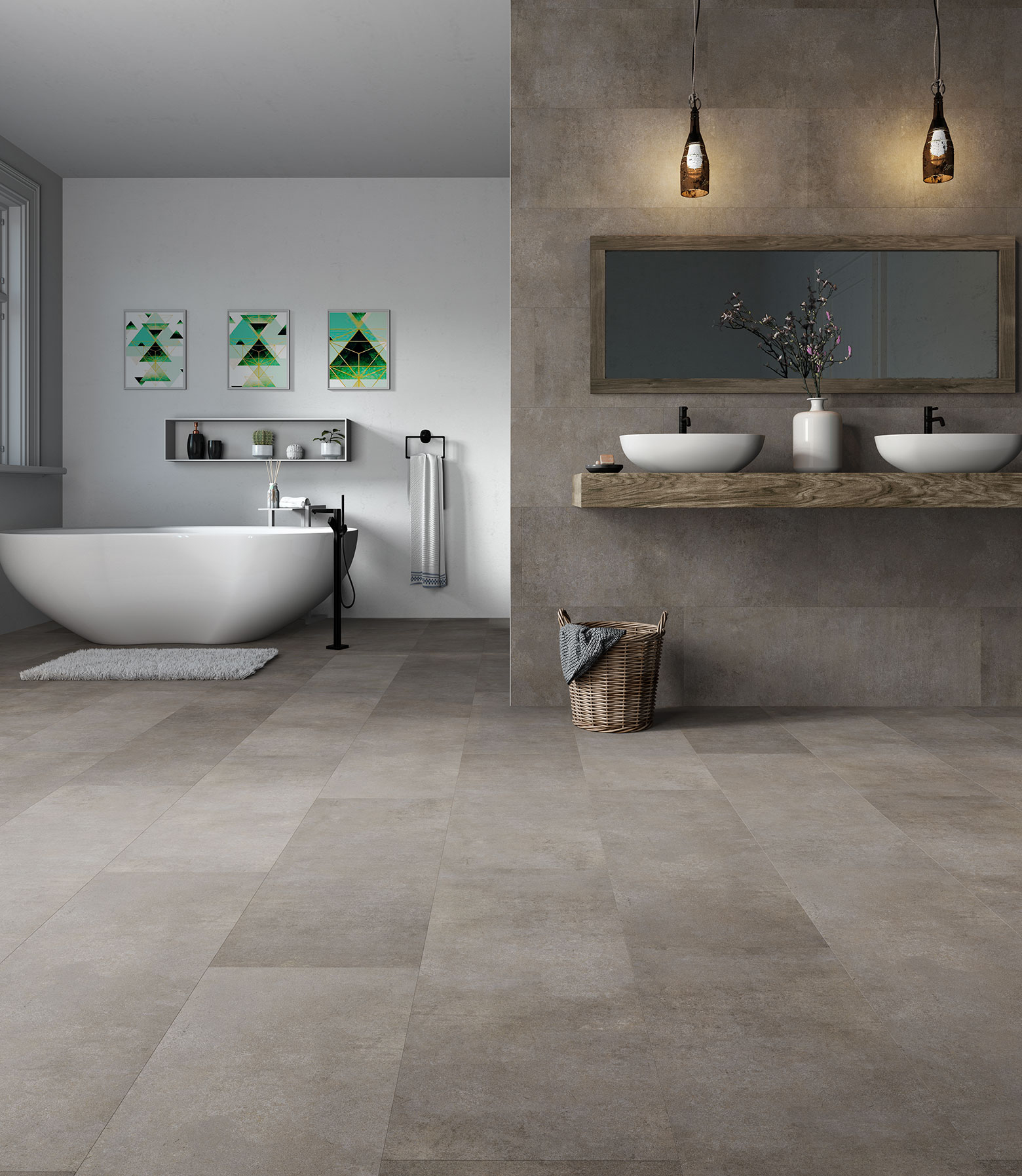 Thanks to use class 34/AC6, the design floors are ideally suited for very heavily frequented residential and commercial spaces. The matt stone structure of the design floors in tile format creates a modern look and ensures a high level of walking comfort.
