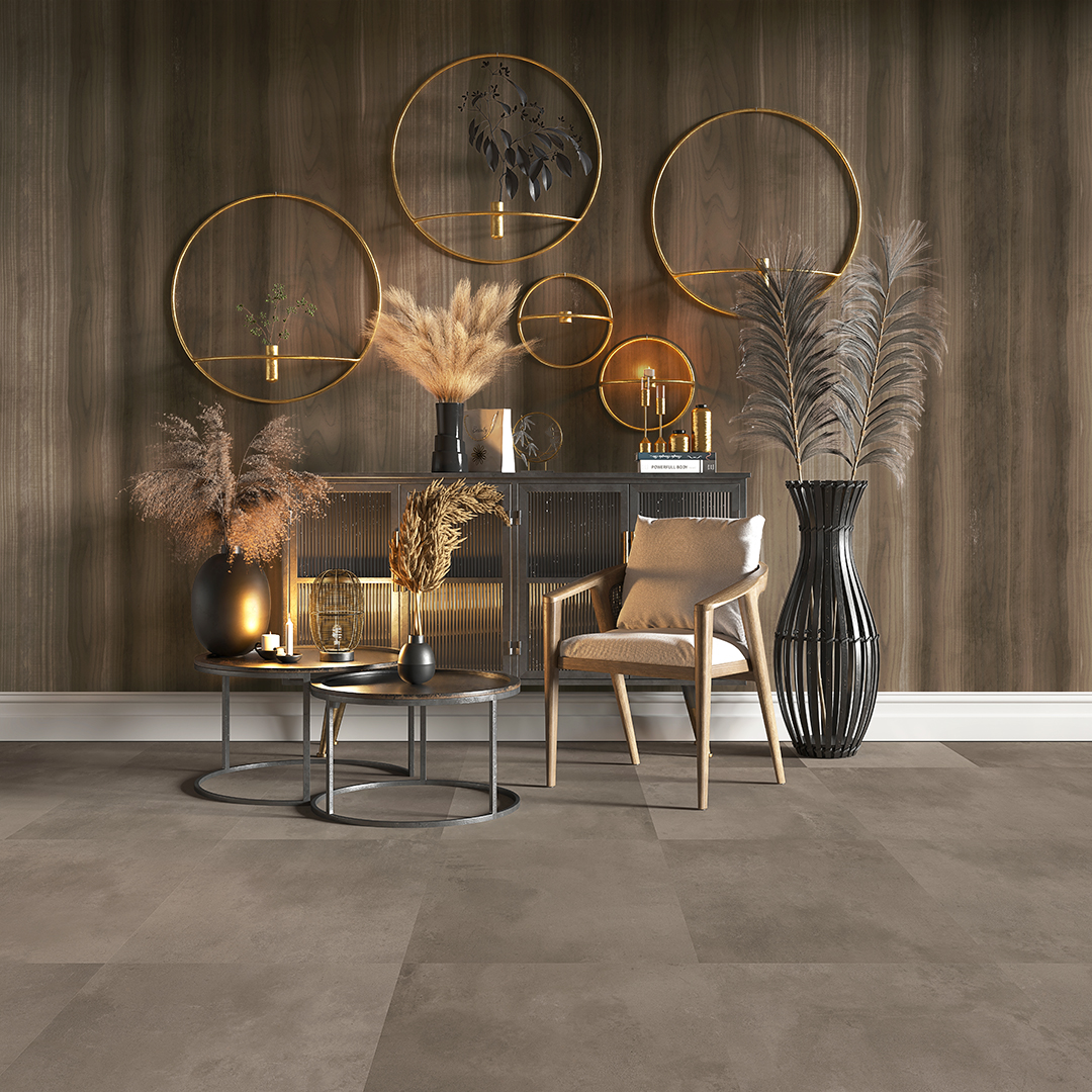 Der Designboden Screed Brown präsentiert sich in einer dezent dunklen Optik, die hochwertig und ausgewogen wirkt. Die Farbverläufe erzeugen eine angenehme Dynamik, ohne aufdringlich zu sein. Dieser Boden ist ideal für Räume, die Mut zur Farbe zeigen. Er harmoniert sowohl mit schwarzen und kräftigen Farbtönen als auch mit matten Farben. Trotz seiner dezenten Farbgebung ist dieser Boden perfekt für Menschen, die farbenfrohe Akzente setzen möchten.