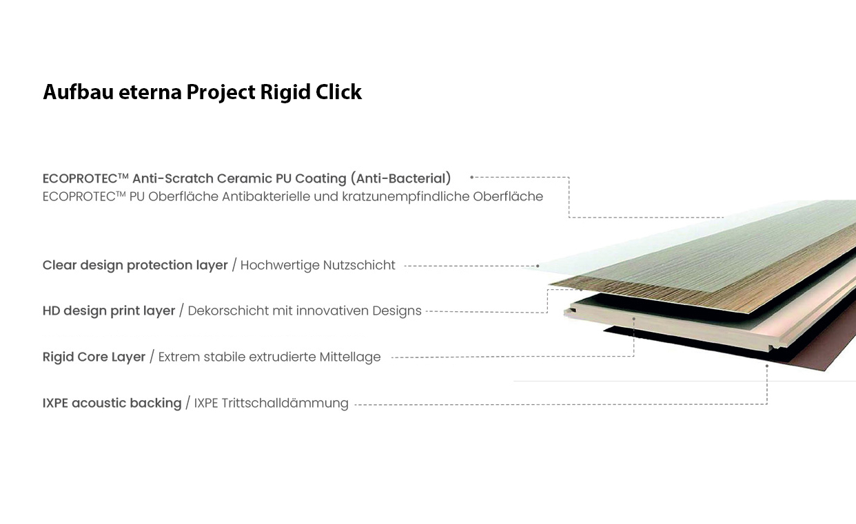 - With integrated impact sound mat (Rigid Board) for an extremely quiet floor