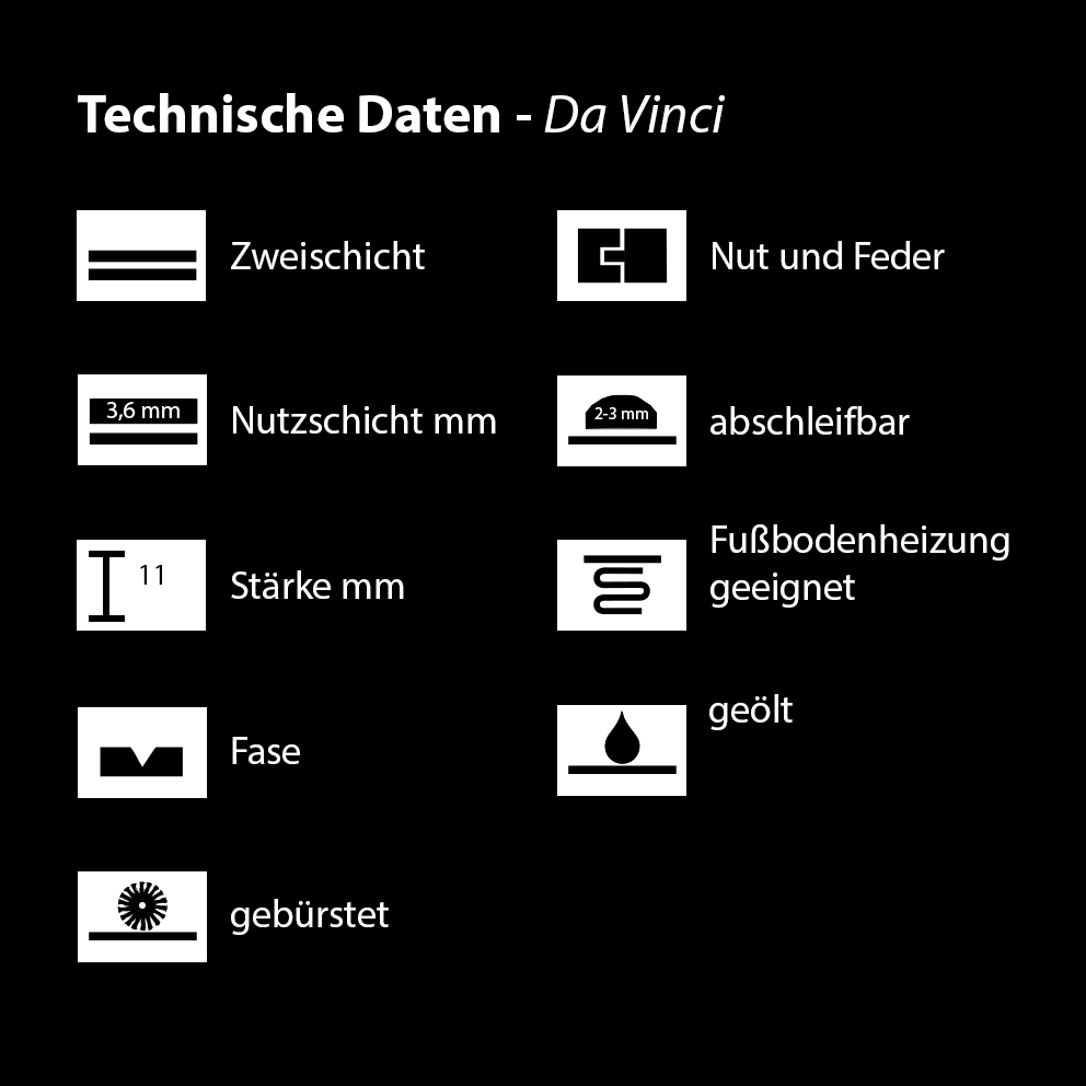 The planks are available with 4-sided bevels. Chamfers accentuate the plank character and create atmospheric accents in your rooms. Floor-Art® Da Vinci planks must be glued over the entire surface.