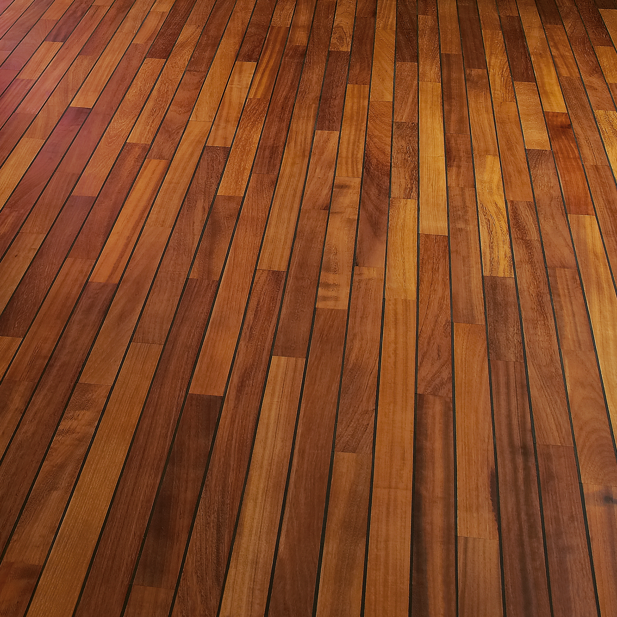 The multi-layer country house planks in ship deck look originally come from boat building for luxury yachts. They are ideal for installation in the bathroom, spa area or kitchen. Choose between the five tropical woods acacia, doussie, iroko, teak and wenge. The tropical woods with rubber joint protect the floor from moisture penetration and give slip resistance. In addition, the black joint emphasizes the character and beautiful format of the wooden sticks.